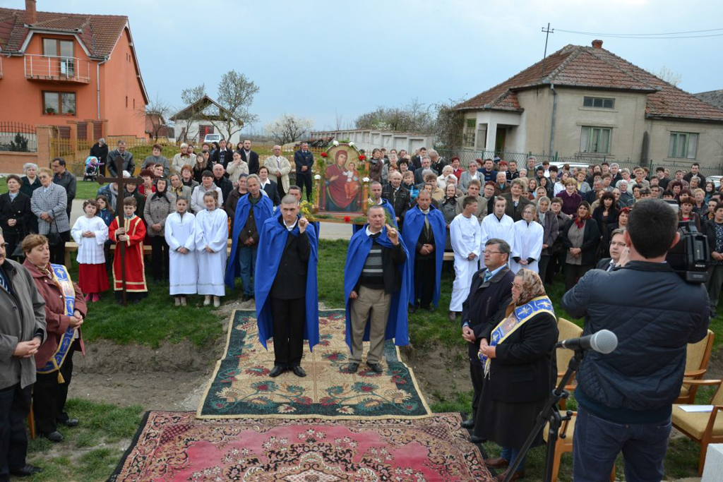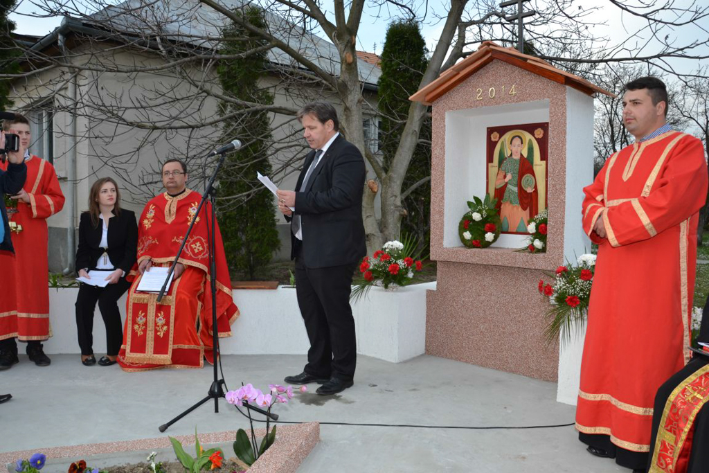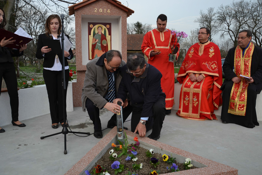 Vasárnap délután ismét hívek sokasága töltötte meg a nagypeleskei templomot. Évfordulóra gyűlt össze a falu apraja nagyja, szép számban zarándokok Szatmárról, a környező falvakból, sőt külföldről is. A nap fontos eseménye az úti ikon megszentelése volt valamint egy időkapszula elhelyezése, amely a Nemzetközi Időkapszula Egyesület adatbázisába is bekerül. Az időkapszula egy olyan tartály, amelyben régi idők tárgyai találhatók, vagy információ régebbi időkből. Egyfajta kommunikáció a jövővel. Általában valamilyen jeles esemény alkalmával, ünnepség kíséretében helyezik el, hogy aztán a (közeli vagy távoli) jövőben kinyissák. A jeles esemény jelen esetben az ikonszentelés volt, amelyet a nagypeleskei Istenszülő ikon két éve történő, gyalogos menetben való hazahozatalának emlékére festettek meg, és közel a templomhoz, az országút mentén szentelt fel ifj. Pallai Béla helyi parókus. Az ünnep templomi szertartással kezdődött, ahol a parókus szentbeszédében beszélt a „peleskei kincs” rövid történetéről, mondván: „Vak az, aki nem látja, hogy a Mária kép itthon maradásának valami oka van. Felújított állapotban templomunk ékessége lett. Mégis mintha árva s egyedül lenne. Ezért gondoltuk úgy, hogy az úti ikonunk, ennek a Mária ikonnak a párja legyen, hasonlóan ahhoz, ahogyan az a régi, 1700-as évekből származó ikonosztázionon volt. Akik a templom előtti úton elhaladnak, ismerjék meg, hogy Szent Mihály a mi védőszentünk, égi pártfogónk.” Az ikon alkotója Cristina Busuioc, az egyedüli, tempera festményekre szakosodott, okleveles festő restaurátora Szatmár megyének. Tíz év alatt több mint 1000 ikont és az ország számos műemlék ikonosztázionját állította helyre. A Szatmári Múzeum szakembere azon kevesek egyike, akik Erdélyben fára festett vallási témájú festményeknek adja vissza régi csillogását. 1969. március 14-én Szatmáron született, házas és jelenleg egy kisfiú boldog édesanyja. 1996-ban idegenvezető a megyei múzeumban. 1997 és 2000 között szakosodott és szerzett restaurátor diplomát. Munkái közül a leghíresebb a XVII. századi Neamț-i kolostor ikonosztázionjának restaurálása. Több magángyűjtőnek is dolgozott már, de grafikával és reklám formatervezéssel is foglalkozik. Ő volt, aki elsőként ellátta védőréteggel a nagypeleskei Istenszülő ikont, hogy megóvja az esetleges további romlástól.