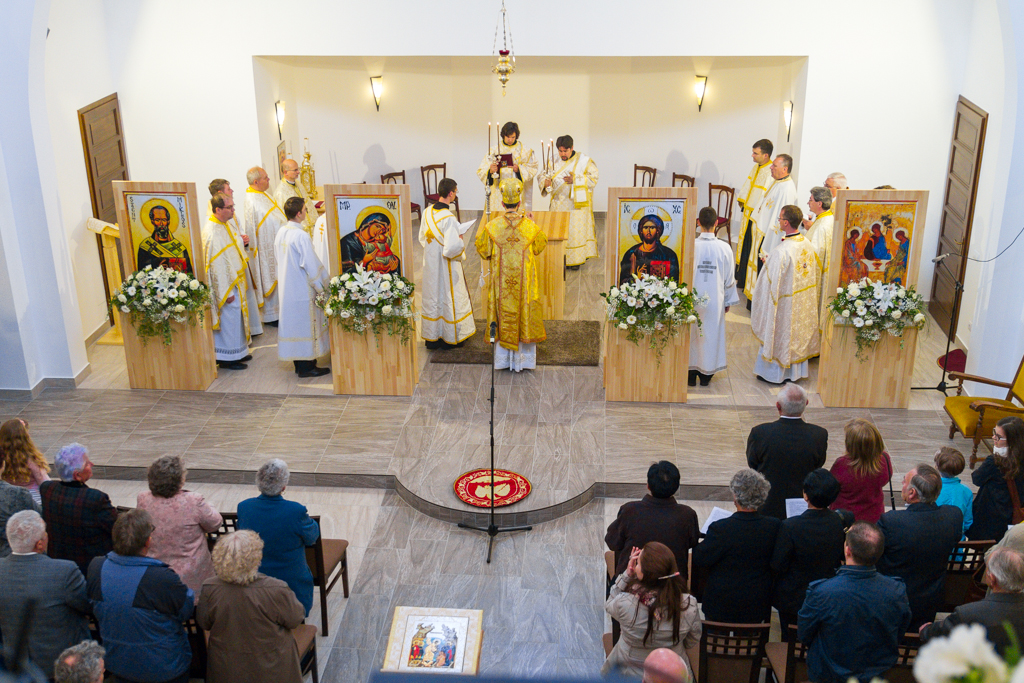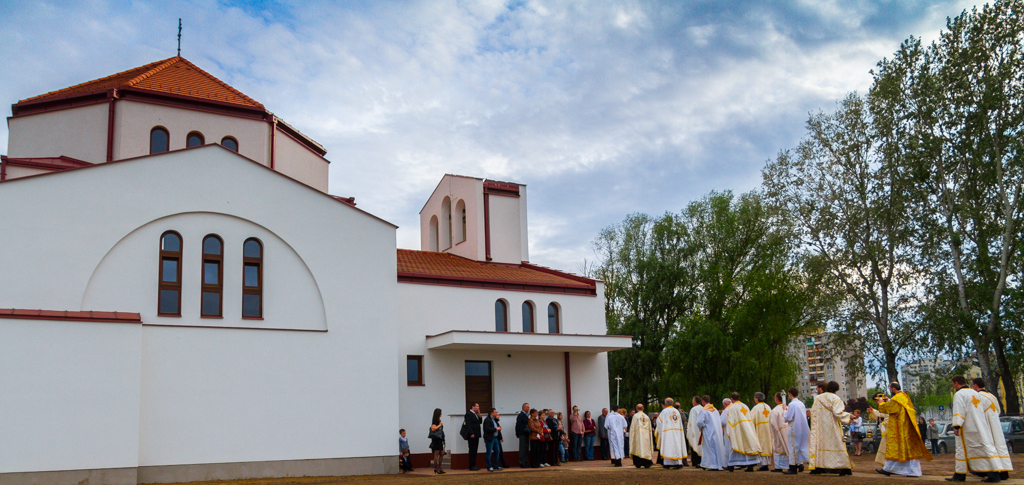 Az örökösföldi templom alapkövét éppen három éve, 2011. április 30-án, II. János Pál pápa boldoggá avatásának napján tették le. Az épületet Kulcsár Attila tervezte, a bizánci liturgikus előírásoknak megfelelően kialakítva a közel 300 fő befogadására alkalmas megszentelt teret. Az építkezés költségei nagyjából 120 millió forintba kerültek, melynek egyik harmada állami, másik harmada egyházmegyei támogatás, harmadik harmada pedig adomány és összefogás eredménye.