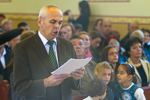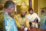 Püspök atya prédikációjában kiemelte, hogy különlegessé, széppé vált a templom, nagy megújulás tanúi lehetünk. Majd az okos szüzek példabeszédén keresztül a nekünk felajánlott bőséges kegyelemre, keleti egyházunk szép hagyományaira hívta fel a figyelmet és arra buzdított, hogy igyekezzünk ennek az örökségnek eleget téve megélni és megújítani hitünket.