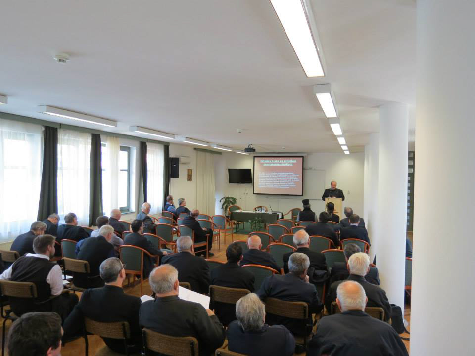 Szombaton, az utrenye imádságát és a reggelit követően, a zsinati dokumentum egyes részkérdéseibe nyerhettünk betekintést. Ennek fényében hallhattuk Lukács Imre atyát (Az Orientalium Ecclesiarum szentségtani útmutatása), Kovács Csaba fiatal kollégánkat (A hiteles keleti hagyomány kérdése a II Vatikáni Zsinat Orientalium Ecclesiarum kezdetű dekrétumában), Szabó Péter tanár urat (Az Orientalium Ecclesiarum kánonjogi hangsúlyai, különös tekintettel a keleti egyházak fegyelmi megújulására) és végül Horváth Tamás atyát (’Communicatio in sacris’ az Orientalium Ecclesiarum szemléletében - a dekrétum hatása és mai megfontolások). Fülöp püspök zárszava és a papi identitásunkban is megerősítő, együtt eltöltött nap, különösen az Orientalium Ecclesiarum zsinati tanítás fényében ismét felhívhatta a jelenlévő atyák figyelmét arra, hogy a papi hivatásunkat mindig az egymást harmonikusan kiegészítő oszlopokra, a szív-lélek és az értelem alapjaira kell építenünk, megtalálva az imádság és a teológia egységét.