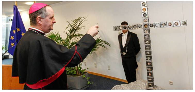 A keresztet a COMECE képviseletében Theodorus Hoogenboom püspök áldotta meg. Othmar Karas szerint a kereszt feladata, hogy figyelmeztessen az európai egység mélyebb értelmére. „Nem elválaszt, hanem közelebb hoz egymáshoz” – fogalmazott az osztrák néppárti politikus.