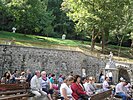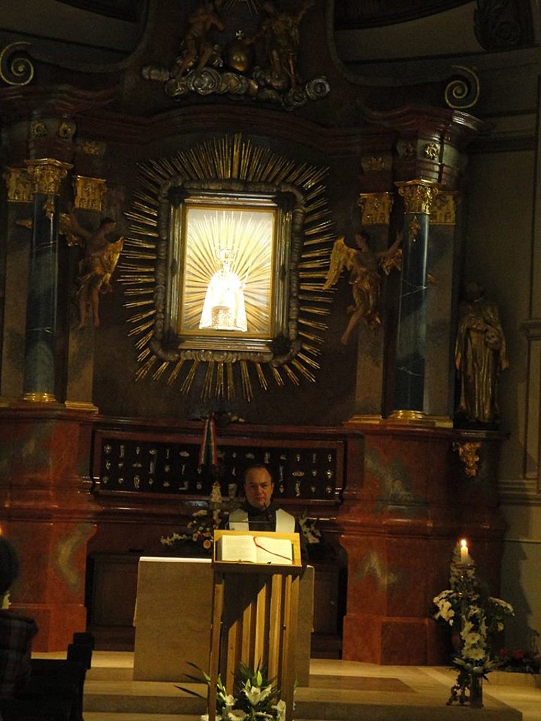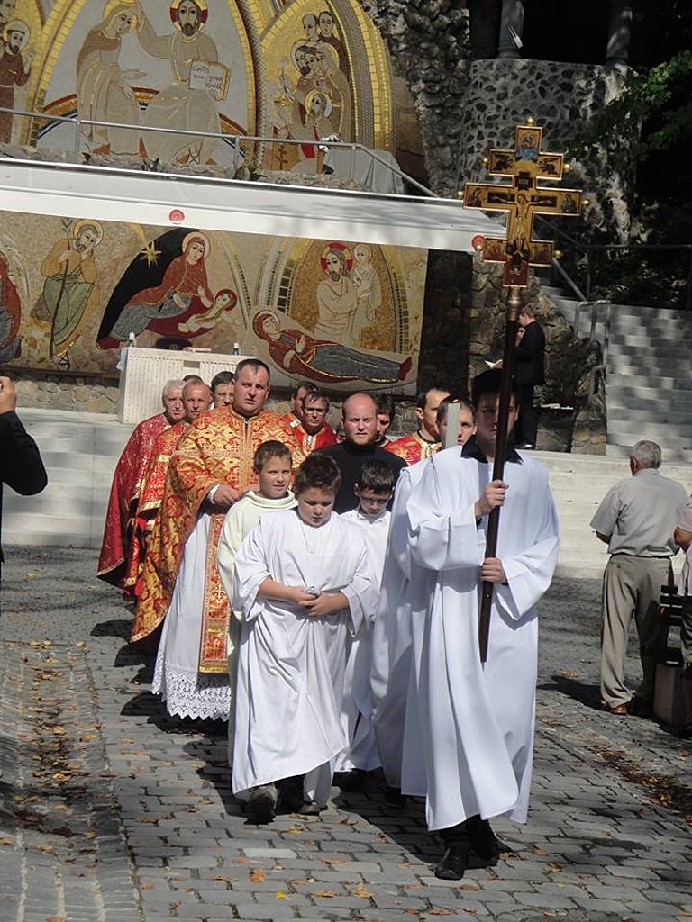 A liturgia előtt Kálmán Peregrin kegyhelyigazgató atya szívélyesen köszöntötte a budapesti, kispesti, csepeli, halászteleki, szigetszentmiklósi, gödöllői, Debrecen-csapókerti, hajdúsámsoni, nyíradonyi, kállósemjéni, Miskolc-görömbölyi, felsőzsolcai görögkatolikus híveket és lelki atyáikat valamint a Miskolci Görög Katolikus Általános Iskola pedagógusait és diákjait. A közel 1300 zarándok énekét a Görögkatolikus Papnevelő Intézet növendékei vezették. A prédikációban dr. Jaczkó Sándor helynök az életadó kereszt teremtő és átalakító hatásáról beszélve kiemelte, hogy a történelem Ura az emberi gondolkodást meghaladó jövőt tervez görögkatolikus egyházunk, hazánk és a világ számára is. A Szent Liturgia szokásos módon a himnuszok eléneklésével zárult. A ferences atyák barátságos vendéglátását és a finom ebédet külön is köszönjük.