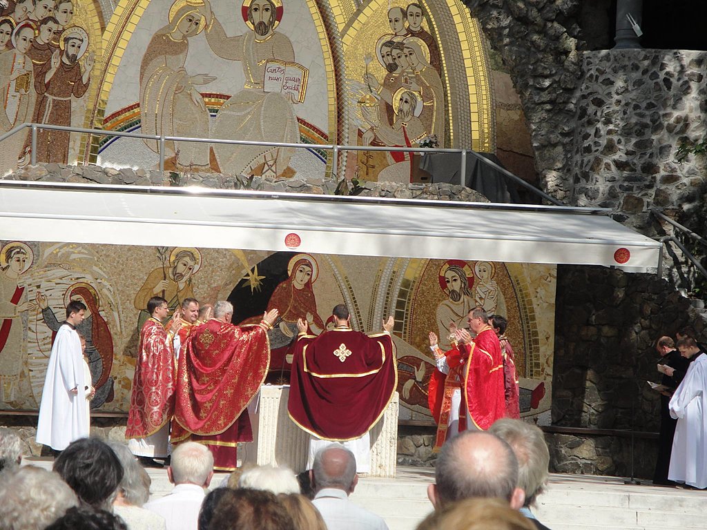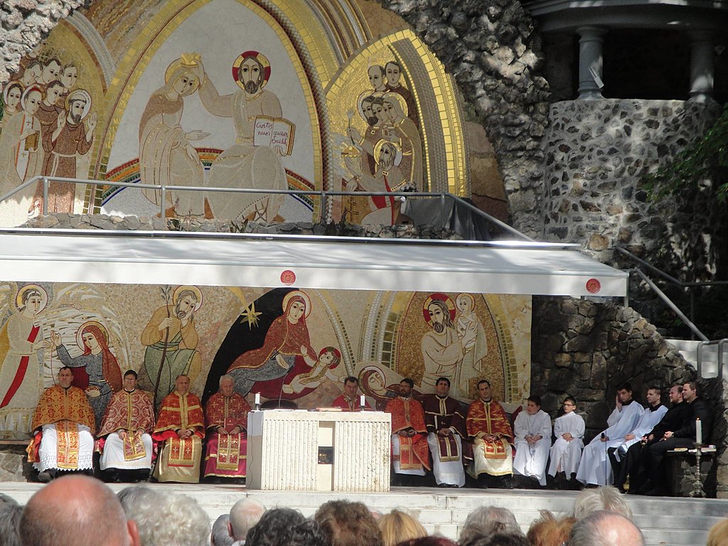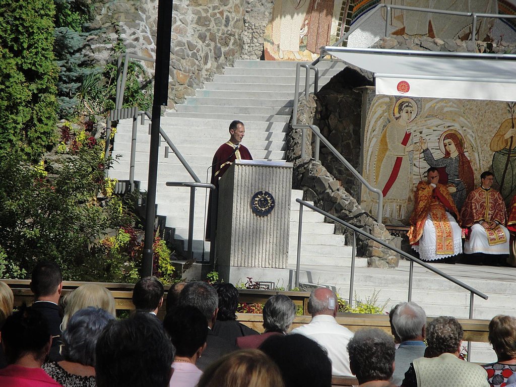 A reggeli zápor után a viharfelhők felszakadoztak és a napsugár egyre inkább mosolyt csalt a hívek és a papok arcára is. A szép idő és a liturgiára felkészítő katekézis egyre nagyobb tömeget gyűjtött össze a szabadtéri oltár elé. Az előadást Prodán Gábor csepeli parókus, családügyi megbízott tartotta Magány és a közösség megélése a szerzetességben és a családban címmel. A gondolatébresztő és gyakorlati példáknak köszönhetően még az önállóan üldögélők is egyre bátrabban húzódtak össze és keresték mások társaságát.