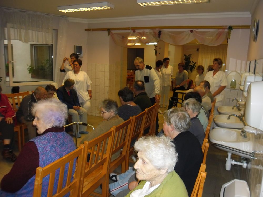 - A nyíradonyi ápolási otthonban élők és az ott dolgozók részére kulturális műsorral készültünk. Örömmel fogadták felajánlásunkat, és az öregség és öregkor témakörét versekkel, prózával és zenei aláfestéssel körbejárva és bemutatva, a közös együttlétünk mindenki örömét szolgálta. A két korosztály ilyen jellegű találkozása arra ösztönzött mindenkit, hogy jó lenne más alkalommal is találkozni. A műsor után az otthon dolgozói egy kis vendéglátással is megköszönték szolgálatunkat.