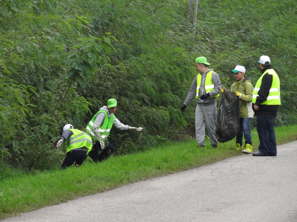 - A másik jószolgálati cselekedet „egy útszakasz megtisztítása a szeméttől” névvel jellemezhető. Most tapasztalták meg a fiatalok, hogy az út mentén, ha jobban odafigyelünk, mennyi szemét található. Az emberi gondatlanság és szándékolt cselekedet eredménye ez. Nem figyelünk oda sem egymásra, sem a természet szépségére. A fiatalok részéről ez a munkafolyamat is jó hangulatban telt, mert érezték, hogy fontos, amit éppen most csinálnak.