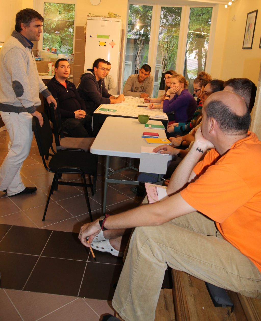 A szakkollégium alapvető célkitűzése, hogy hozzájáruljon a közéleti feladatvállalás iránt elkötelezett, aktív társadalmi párbeszédet folytató cigány és nem cigány értelmiségiek formálódásához, akik a szakmai kiválóságot ötvözik a társadalmi és szociális kérdések iránti érzékenységgel. A roma szakkollégiumok működésének egyik alapeleme a modulárisan építkező tanulmányi rendszer, melyet az egyes szakkollégiumok szemeszterenként saját szakmai tartalmakkal töltenek meg, egyéni munkaformákban megszervezve. A debreceni Szent Miklós Görögkatolikus Roma Szakkollégium október 17-én a közismereti modulon belül tanulástechnikai és tanulásmódszertani ismeretek megszerzését tűzte ki célul a hallgatók elé. Mező Ferenc személyében egy humoros, jól felkészült előadóra találhattunk a témához, aki az esős, borongós időben is le tudta kötni a hallgatók figyelmét több mint hat órán keresztül. Reméljük, a megszerzett ismereteket jól tudják majd hasznosítani a szakkollégisták a zárthelyi dolgozatok, beugrók, vizsgák időszakában.