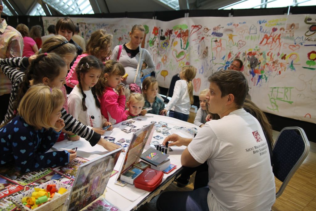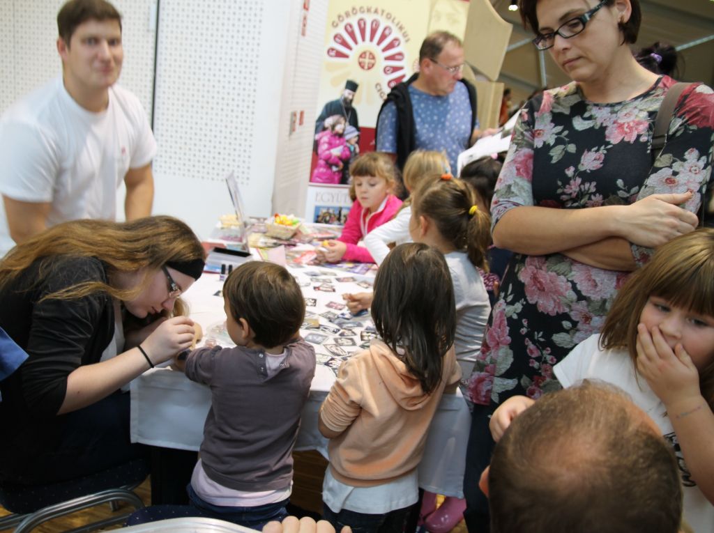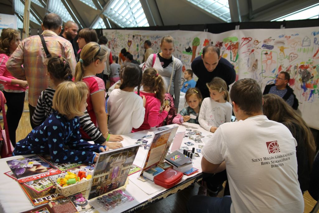 Amíg az egyes állomásoknál a gyerekek rajzoltak, festettek, addig a görögkatolikus cigánypasztorációs munkánkat bemutató asztalnál a debreceni Szent Miklós Görögkatolikus Roma Szakkollégium hallgatói a gyerekek kezére varázsoltak szebbnél szebb és színesebb csillámtetoválást.Míg a gyerekek mintát és színt választva türelmesen várták a sorukat, addig a felnőttek szemlélődtek, kiadványainkat olvasgatták.