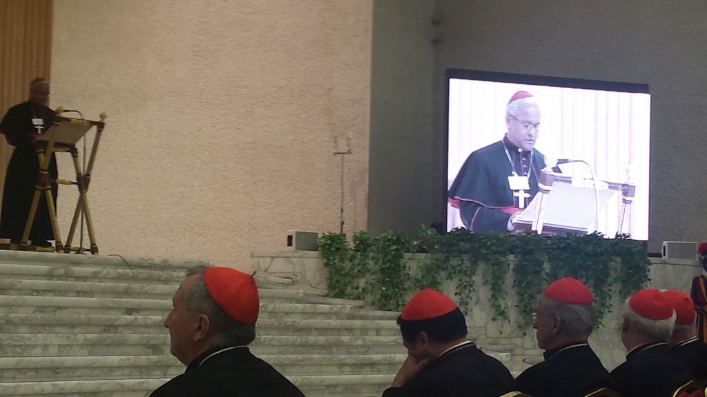 Az ő előadása után az öt földrész egy-egy képviselője szólalt föl, némelyik egészen személyes hangvétellel. Európát Vincent Gerard Nichols westminsteri bíboros, Afrikát Francisco Chimoio, mozambiki érsek, Amerikát Ricardo Ezzati Andrello, chilei érsek, Ázsiát Louis Raphael I. Sako, babiloniai káld pátriárka, Óceániát pedig Soane Patita Paini Mafi, tongai püspök, a Pacifikus Püspöki Konferencia elnöke képviselte. Természetesen, közben a gyermekek éneke könnyítette a nagy tartalmas beszámolók hallgatását és befogadását.