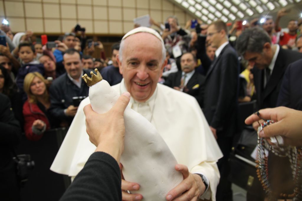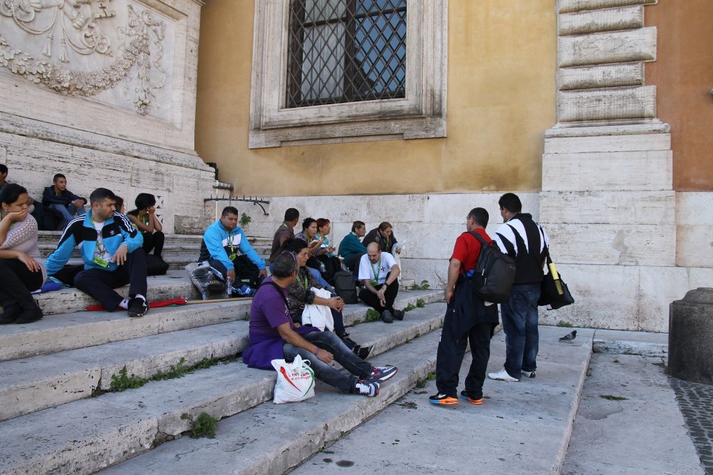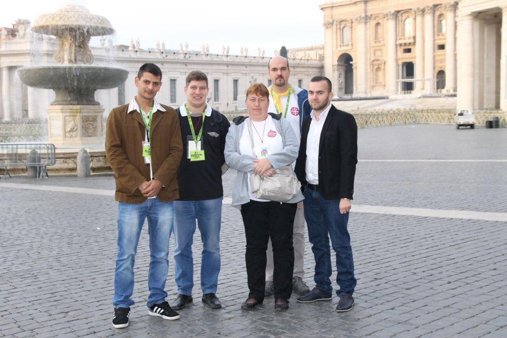 A hétfői nap volt talán a legérdekesebb, hiszen e nap látogattuk meg a zarándoklatút részeként a Vatikánvárost. Reggeli nyolc órás kezdettel a Szent Péter bazilikában a Szent József oltárnál szentmise vette kezdetét a minket kísérő atyák vezetésével magyar nyelven, majd a mise után tíz órakor a VI. Pál terembe vonultunk, ahol számos remek cigány származású előadó várt minket. A pápai kihallgatás 11.45-től kezdődött, ahol Ferenc pápa csodálatraméltó szeretetével ismerkedhettünk meg. Európa minden részéből érkező cigány zarándokokat így köszöntötte: „Kedves cigány barátaim!”, majd cigány nyelvjárásban hozzátette: „Az Úr legyen veletek!” Ferenc pápa kiemelte az oktatás fontosságát, a rasszizmus elleni fellépést. A pápai kihallgatás végén Ferenc pápa megáldotta a cigány Madonna-szobrot, majd kivonulása közben váltott pár szót a zarándokokkal. Mindezek után ismét szabadprogram következett, mi szakkolisok a Vatikáni múzeumba mentünk, ahol számos remek ókori valamint egyházi műremeket csodálhattunk meg. Az este folyamán véletlenül botlottunk bele kis csoportunkba, akik épp egy pizzéria előtt ültek.