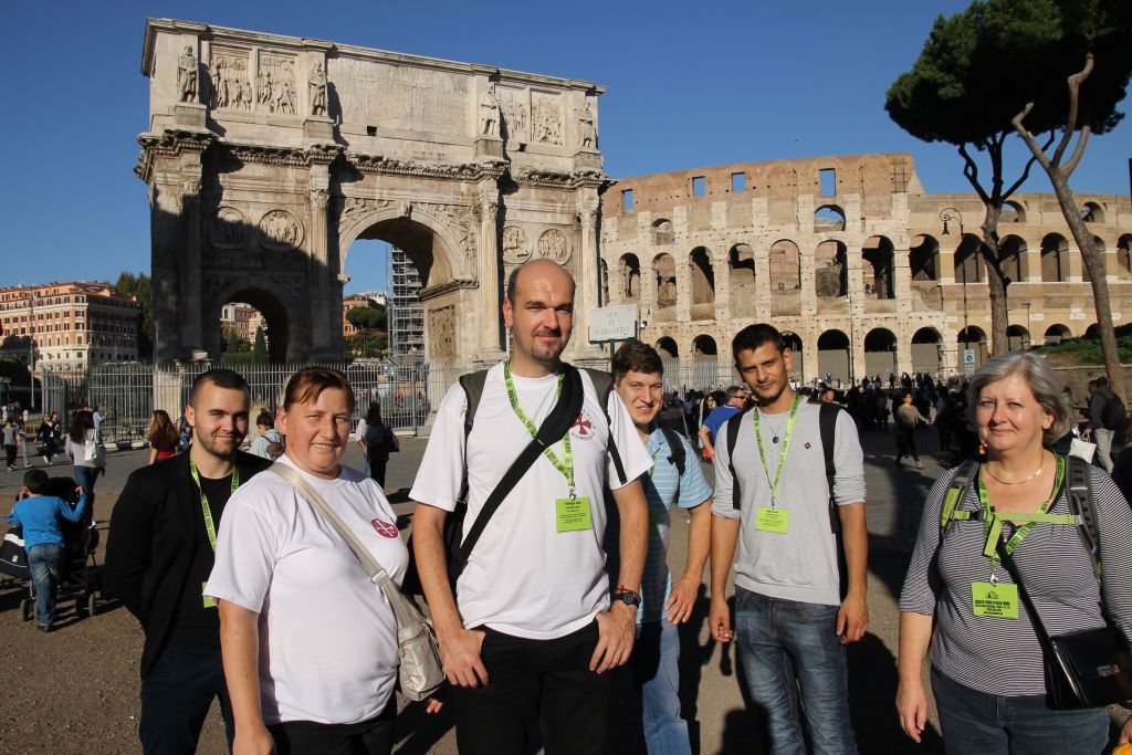Egy nemzetközi roma/cigány zarándokúton vettünk részt, ahol számos országból érekző testvéreinkkel próbáltunk lelki békét nyerni. Magyarország képviseletében három busz indult október 23-án Esztergomból, Budapestről és Nyíregyházáról Székely János lelkivezető útmutatásával. Mi a Görögkatolikus Metropólia három egyházmegyéjéből érkező hívekkel utaztunk. Az út fárasztó volt, de már a buszon érezni lehetett egy olyan légkört, amiben az emberek harmonikus, empatikus kapcsolatba kerültek egymással, valamint Istennel. Az utazás során közös imádságok segítettek felkészülni a másnapra. A kikapcsolódást, szórakozást a közös kártya partik, filmnézés szolgálta. A folyamatos utazás Szlovénián keresztül Rómába kb. 20 órát vett igénybe.