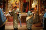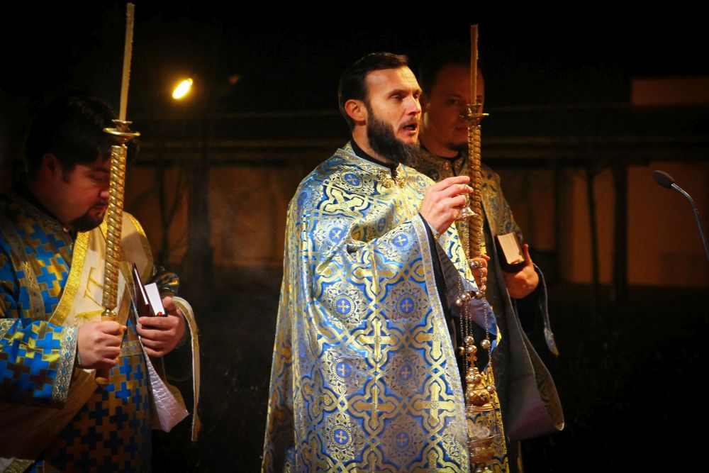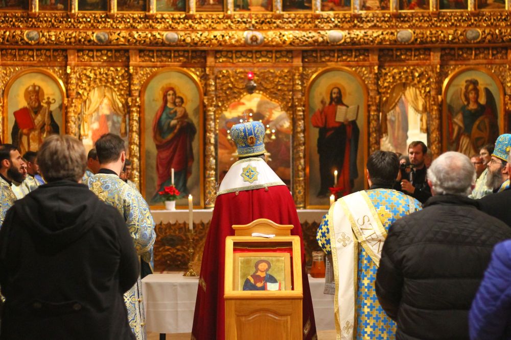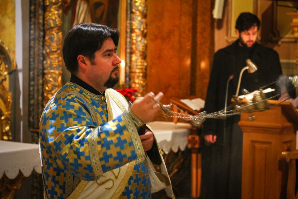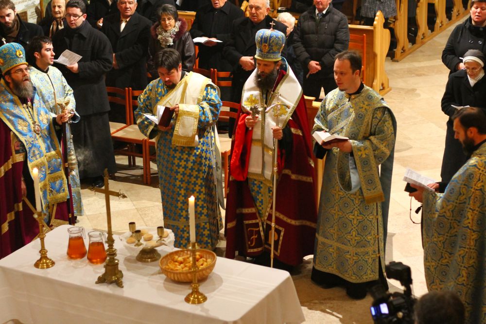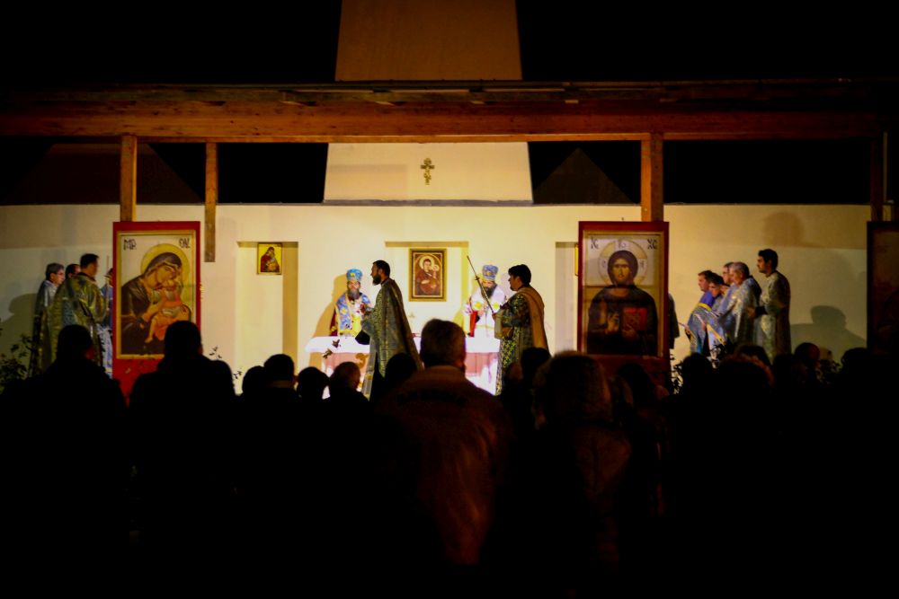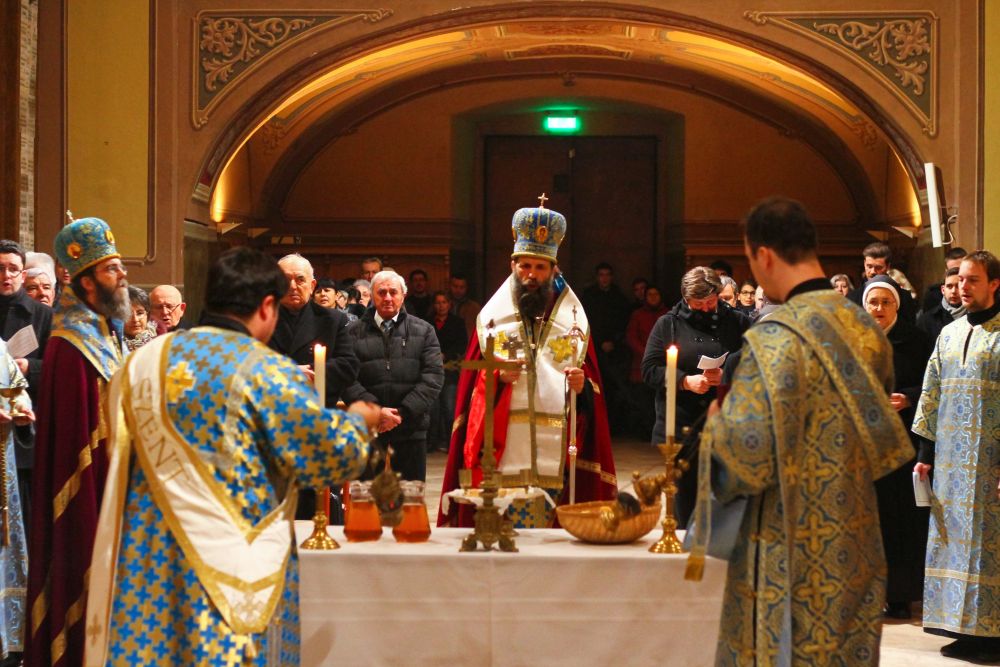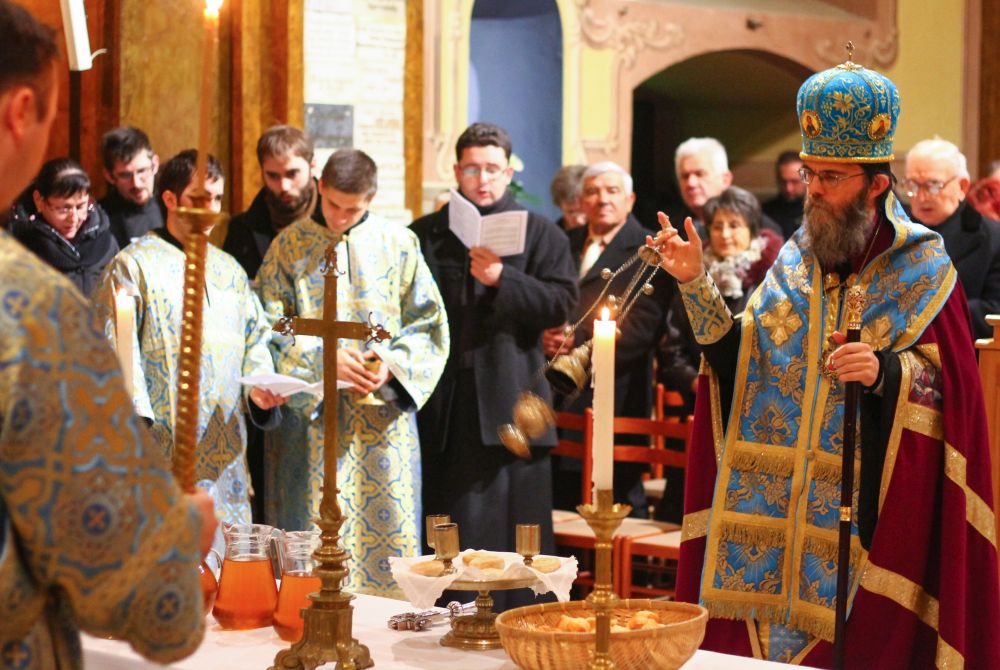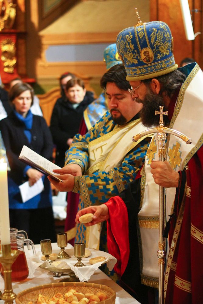 Atanáz püspök atya beszéde után a lítián megáldott kenyérből és borból szerény agapé keretében, a megáldott olajból pedig az utrenye alatt Ábel atya olajkenete által részesültek a hívek.