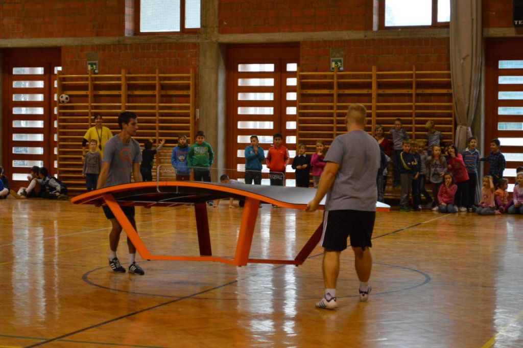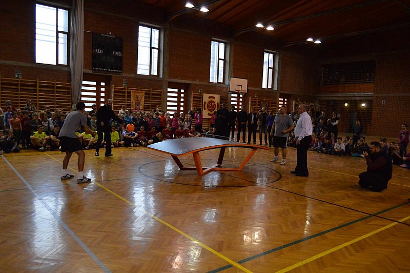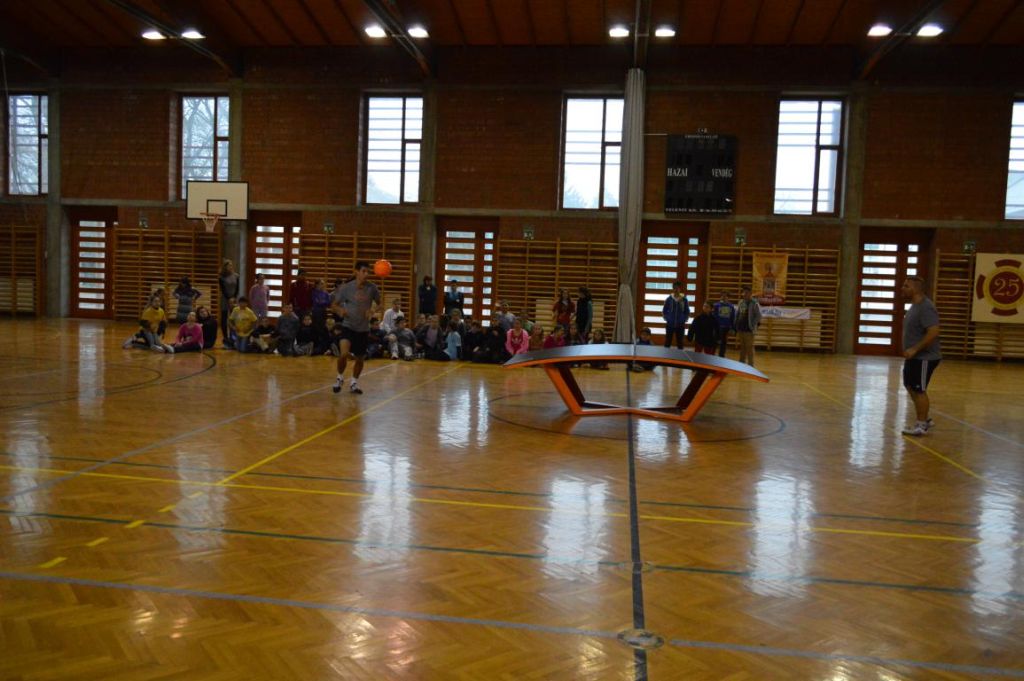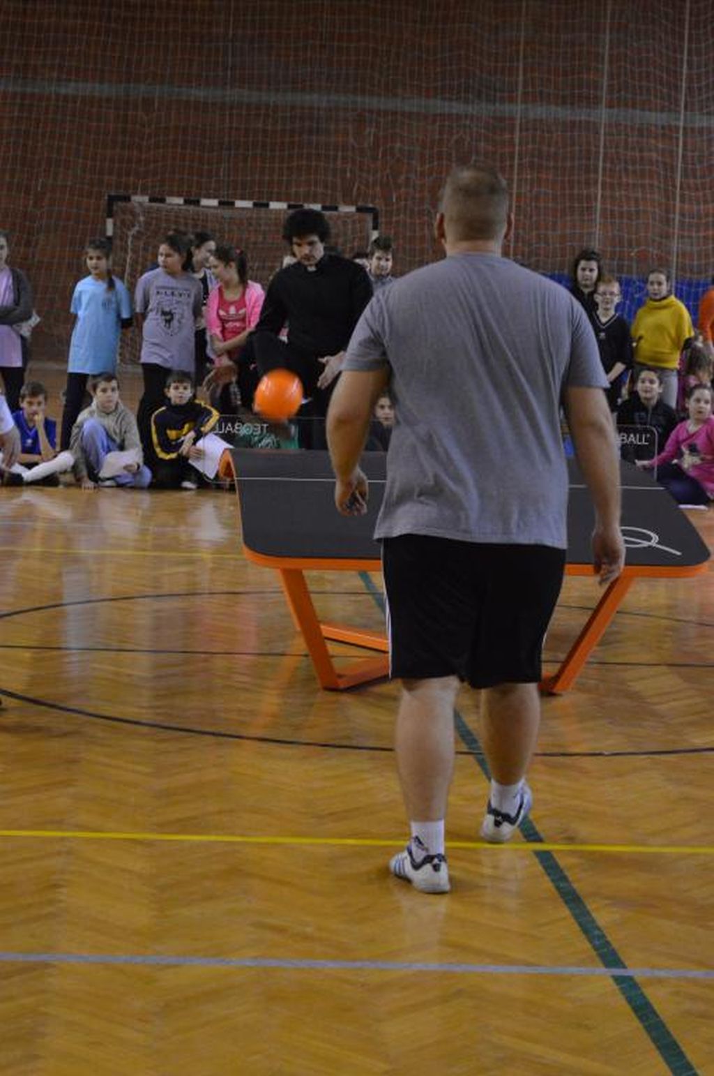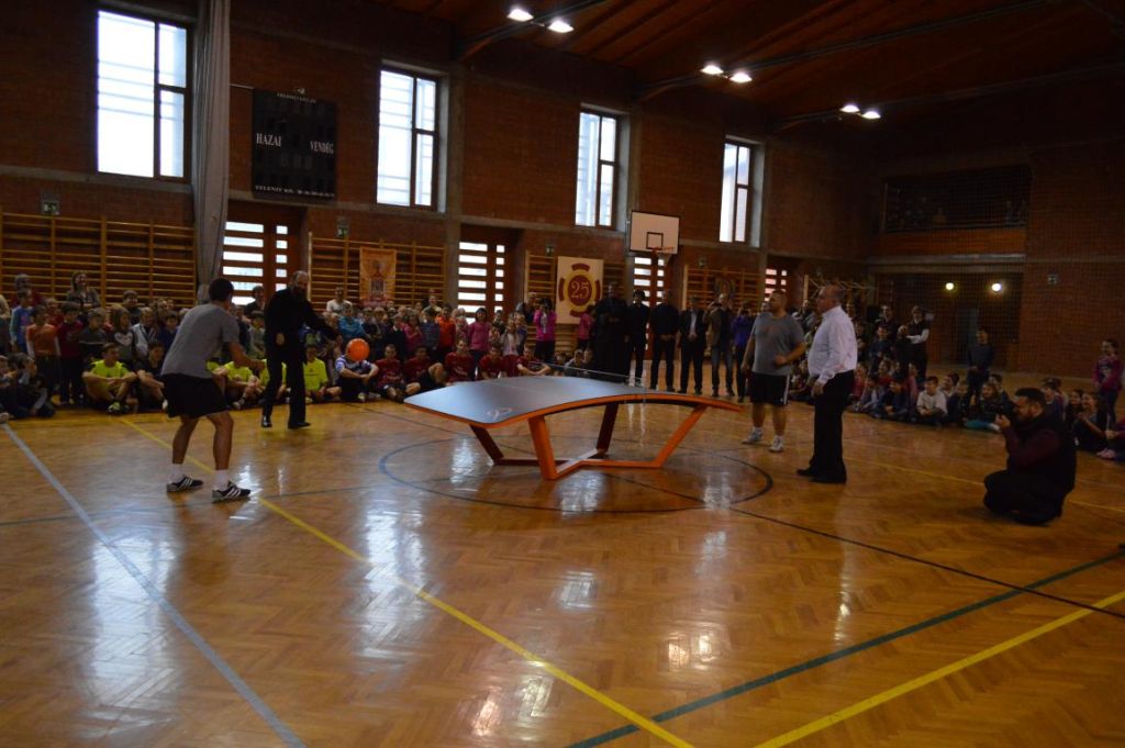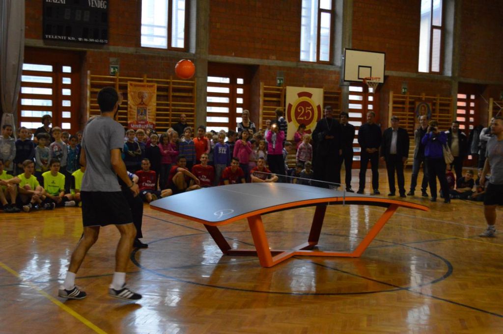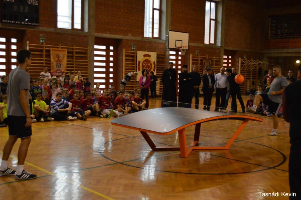 Az ünnepélyes átadás színvonalát emelte Kocsis Fülöp érsek-metropolita, Tiba István miniszteri biztos, Csige László az MLSZ Hajdú-Bihar megyei igazgatója, Herczeg András a DVSC Futballakadémia szakmai vezetője, Krizán Sándor az MLSZ Szabolcs- Szatmár-Bereg megyei igazgatója, László Gyula Guinness-rekordtartó, focizsonglőr és iskolánk igazgatója Szilágyi Gábor atya beszéde. Természetesen iskolánk tehetséges diákjai is megmutathatták tudásukat a közönség előtt. Fergeteges hangulatú, izgalmas kispályás és futsal mérkőzéseknek lehettünk szemtanúi, melyen közreműködtek az általános iskola és a középiskola kiváló sportolói. Ezt követően a vallásos intézményhez és szokáshoz méltóan Kocsis Fülöp érsek-metropolita megszentelte, majd átvette a Teqboard asztalt. Mindezek után Huszár Viktor segítségével betekintést nyerhettünk a TEQBALL rejtelmeibe profi játékosok közreműködésével. Ez egy rendkívül fiatal sportág, mellyel a világ még csak ismerkedik. A profi focisták és az amatőr sportolók számára is kiválóan alkalmas a technikai tudásuk, a koncentrációs készségük és az állóképességük fejlesztésére. A TEQBALL a labdarúgás legtisztább válfaja, mivel a játékosok között nincs fizikai kontaktus, sőt, az eszközt sem lehet megérinteni játék közben, ezért a sérülésveszély kockázata is alacsony. A későbbiekben az iskolánk diákjai is kipróbálhatták, birtokba vehették az asztalt, amely az első pillanattól kezdve a kedvencükké lett.