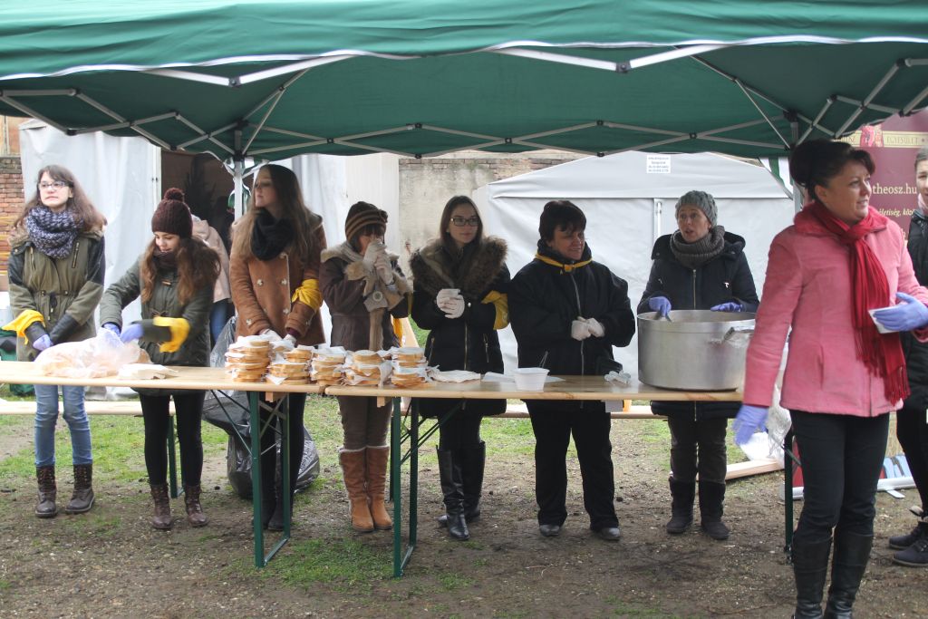 Már délelőttől kezdve folyamatos volt a meleg étel kiosztása az ételjeggyel rendelkező rászoruló személyek számára a Hajdúdorogi Főegyházmegye felajánlásával valamint a Márkó család és a Hierotheosz Egyesület támogatásával. Nincs annál jobb érzés, mikor másoknak tudunk adni, amikor érezzük, hogy mennyire szükségünk van egymásra. Az ételosztásban az Érseki Hivatal munkatársai, a Szent Lukács Görögkatolikus Szeretetszolgálat munkatársai, a Szent Miklós Roma Szakkollégium hallgatói és a Lautitia ifjúsági kórus, valamint a SZÖSZ Mindenkiért Egyesület segédkeztek.