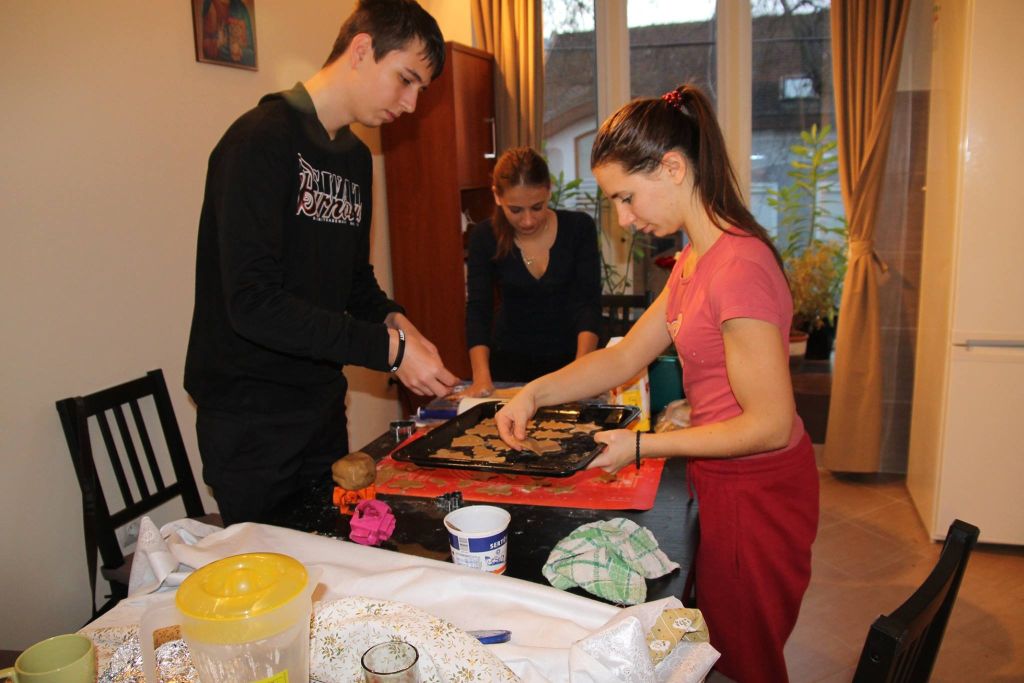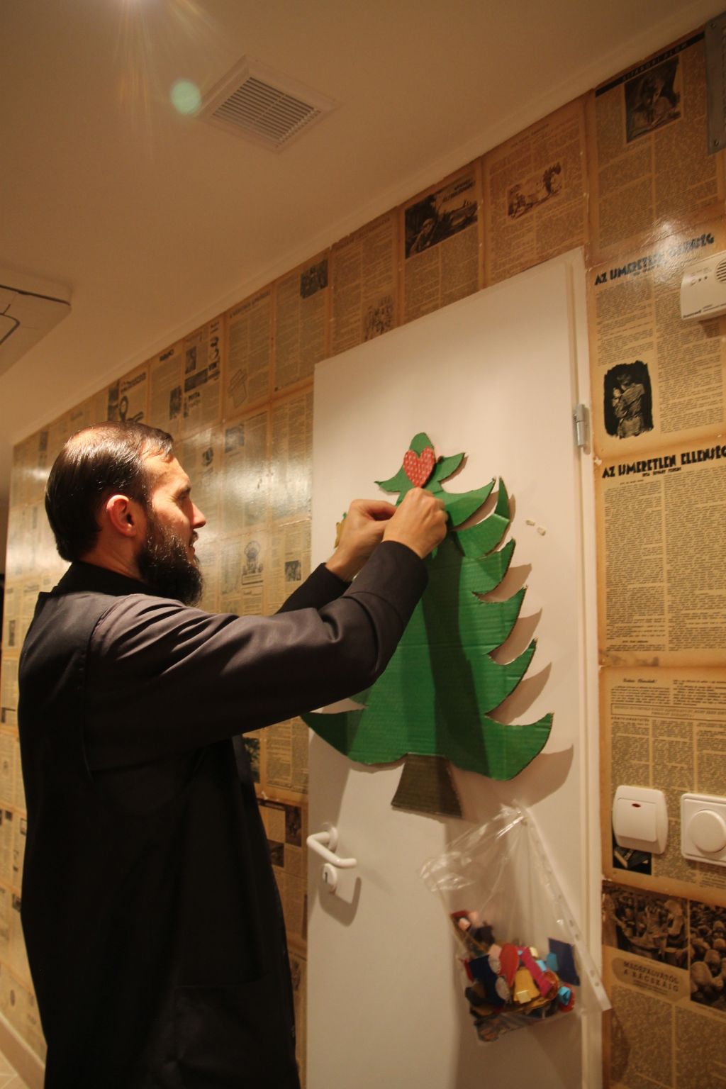 Advent első vasárnapjára elkészült a koszorúnk és az a papírfenyőfa is, melyre nap mint felkerült egy dísz és egy idézet is. Többször is közösen láttunk neki a mézeskalácssütésnek, melyből az érseki hivatal dolgozói, a hajdúdorogi hátrányos helyzetű gyerekek egyaránt részesültek. Vendégünk volt Ábel atya, be-betoppant hozzák hol kisebb, hol hosszabb időre Fülöp érsek atya is. Abban az örömben volt részünk, hogy két gyertyát is vele együtt gyújthattunk meg, énekelve hétről hétre a karácsonyi katavászia verseit. (Milyen jó, hogy közel van a kollégiumhoz az érseki hivatal.) Vasárnap esti közös gyertyagyújtásoknál mindig hálát adtunk valamiért vagy kérésünket fogalmaztuk meg a Gondviselő felé. Nemcsak a Gondviselő Istenhez kerülhettünk így közelebb, de egymáshoz is.