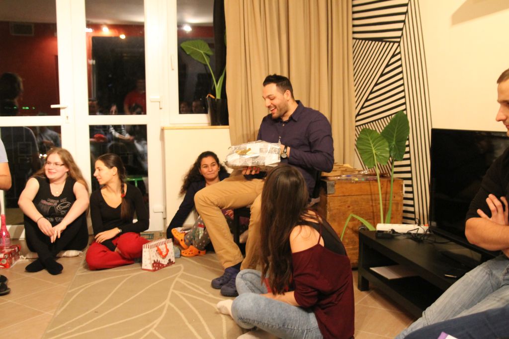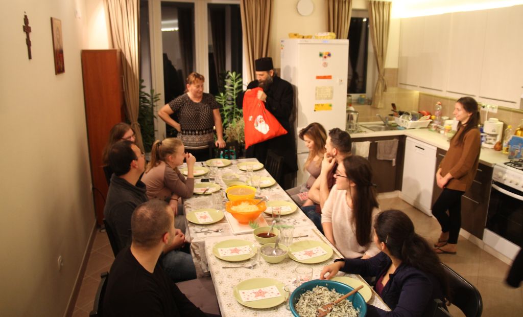 A félév utolsó spirituális modulját Érsek atya tartotta december 16-án, melyhez Pál apostol Szeretethimnuszként emlegetett sorai adták az alapgondolatot. Ezen az estén került sor egymás megajándékozására is, fény derült a titkokra, ki-kinek volt az angyalkája, előkerültek a kedves meglepi személyre szóló ajándékok is. Fülöp atya se távozott üres kézzel. A szorgalmi időszak utolsó hetében a hallgatók együtt feldíszítették a kollégium fáját, majd ajándékcsomagot készítettek a hajdúdorogi gyerekeknek. A szemeszter záró programjaként a Főegyházmegye "Úton Betlehembe ..."karácsonyváró programján vettünk részt december 21-én. Segítettünk az ételosztásban, sátor állításban, terítésben, délután pedig saját sátrunkban mutatkozhattunk be a többi intézménnyel együtt.