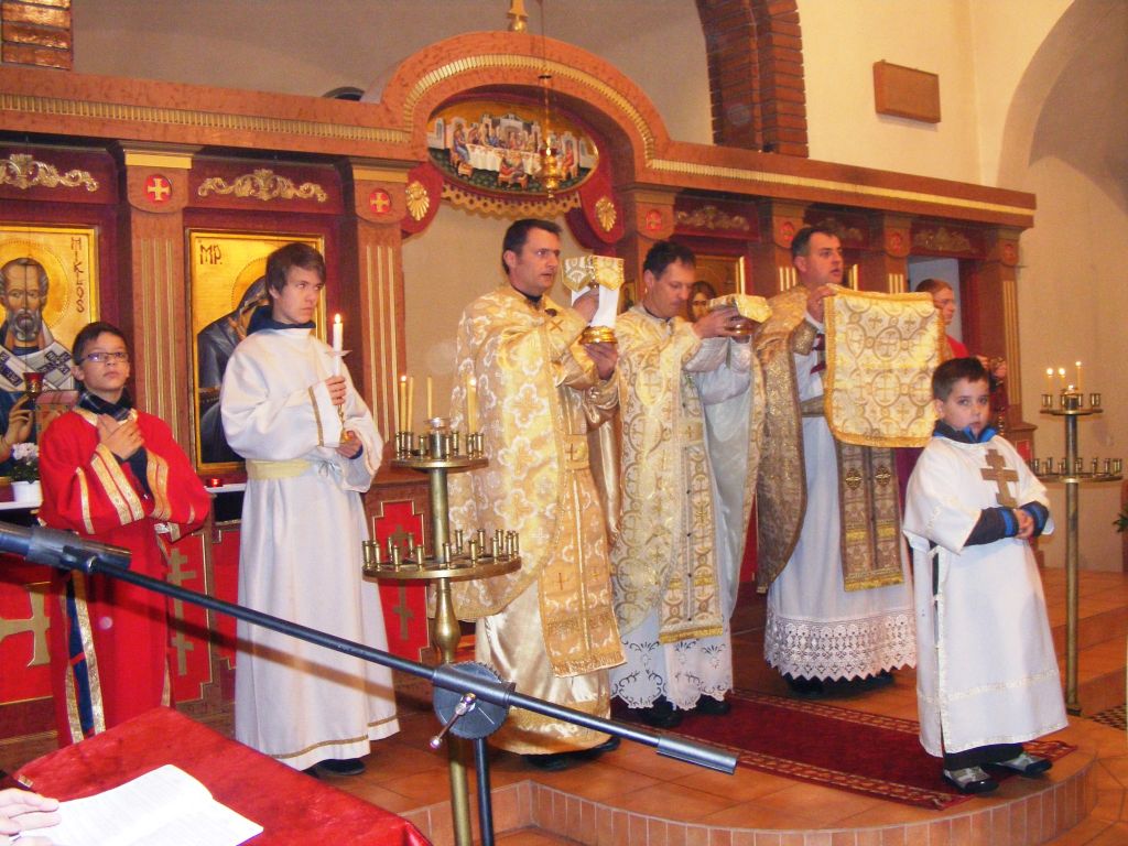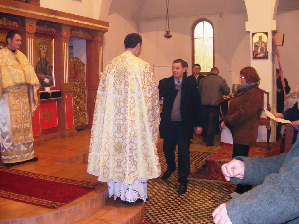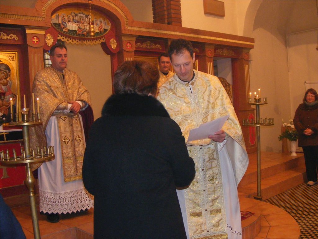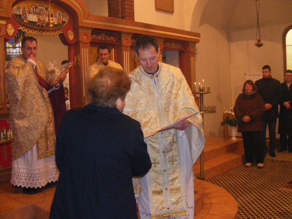 A Liturgia végeztével Deák Csaba parókus atya megköszönte mindenkinek az elmúlt 11 évben kifejtett erőfeszítését, melyet a templom, az új parókia, a nemrégiben elkészült közösségi és hittan terem megszerzése, felújítása, kialakítása érdekében tett nem egyszer erőn felül. Elengedhetetlennek tartotta az atya, hogy megemlékezzünk ujjongó örömünkben az egyházmegyének, az önkormányzatnak és a görögkatolikus híveknek kijáró köszönet nyilvánítás közben pap elődeiről is, Prodán Gábor atyáról, aki 15 éven át látta el negyedik fíliaként sokszor vasárnap kora reggeli órákban a helyi hivek lelki igényének szolgálatát, és legfőképpen a jóban örök nyughatatlan Nagy István atyáról, aki elindította a Csepeli Egyházközségről leválasztott Szigetszentmiklósi Szervezőlelkészség életét, kápolnát, templomot szerzett, közösséget kovácsolt és megalapozta a közösség egyházközséggé válását.