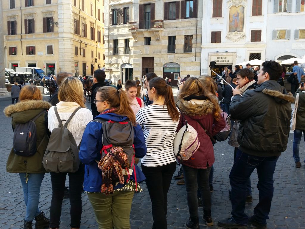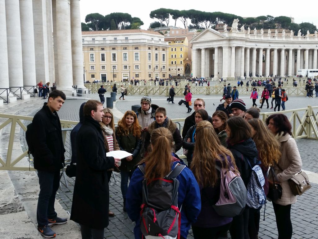 Az elején kezdeném, hogy mindenki értse, hogyan is történtek a dolgok. Tizenhét diáktársammal és egy kedves atyával vágtunk neki Rómának. Első nap végig csak a kisbuszokban utaztunk, viszont már második és harmadik nap lejártuk a lábunkat. (A részletes élménybeszámolót majd szóban, képekkel fűszerezve hallhatjátok.) Bár éjszaka a város koszos és büdös, nappal van min ámulni. Megelégedve és békességet érezve andalogtam barátnőimmel az utcákon. Tökéletes volt a komfort, gyönyörködtem a tájban, a szép emberekben, a hatalmas épületekben.