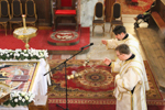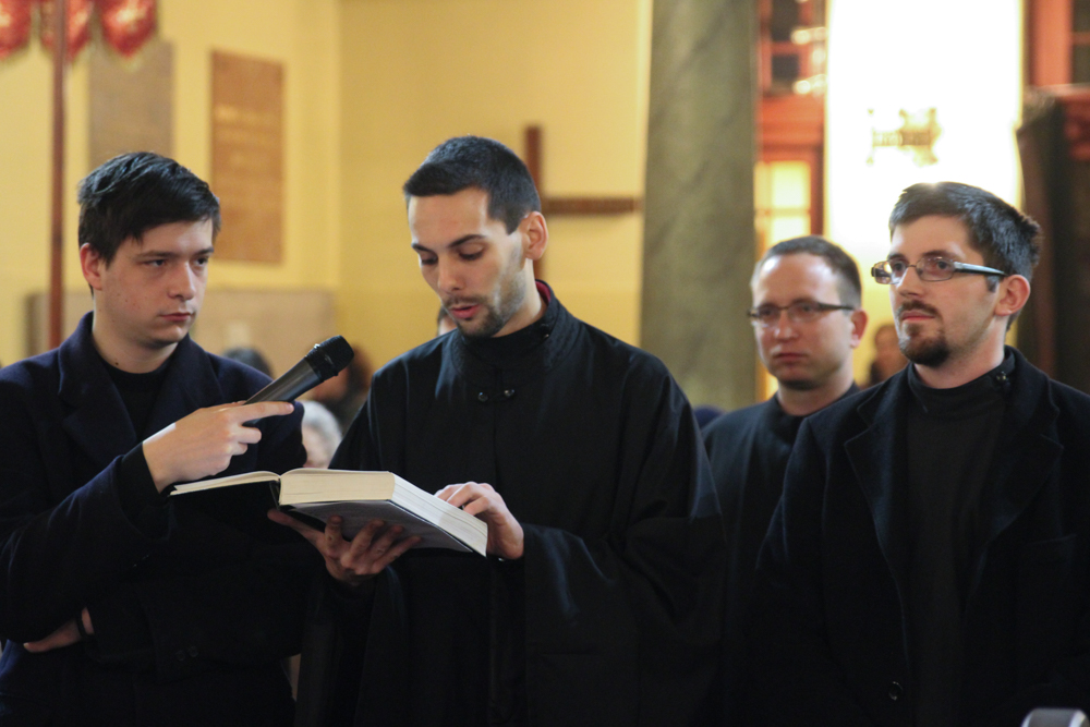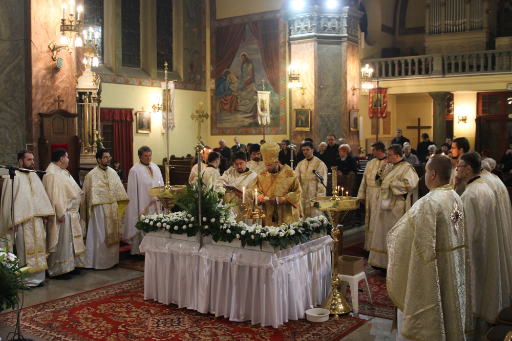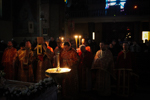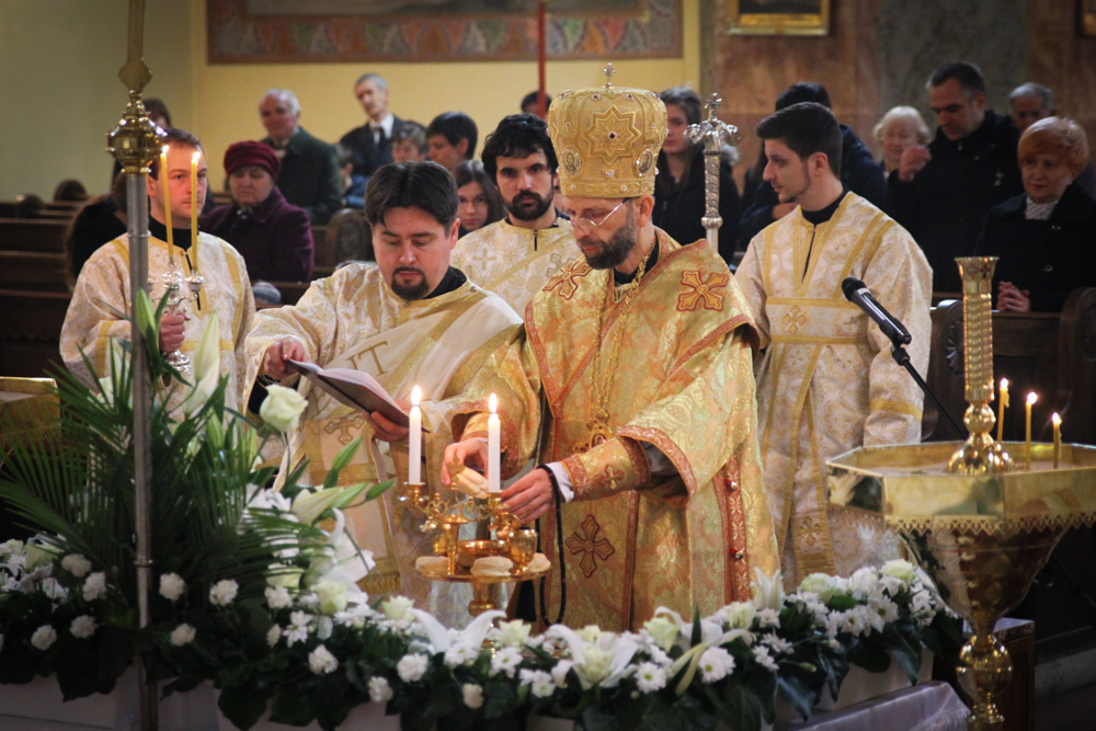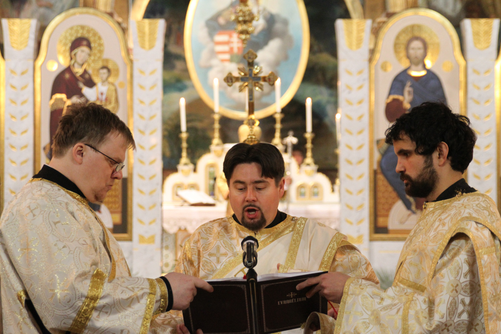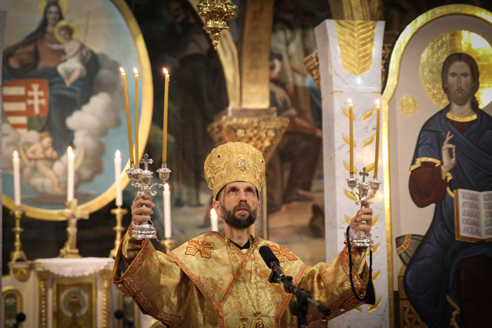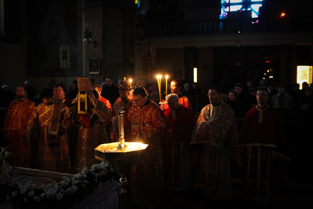 Nagyszombaton délután 5 órakor is megtelt a debreceni főszékesegyház. Vecsernyével kezdődött a szertartás, amelyen sok ószövetségi olvasmánnyal készülhettünk föl az év, az életünk, a világ legnagyobb eseményére. Jónás próféta esete nem csak a három napos cethal gyomrába való bezárás és onnan Isten kegyelméből való megszabadulás miatt fontos előképe a föltámadásnak, hanem mert Isten végtelen irgalmáról beszél, amely minden embert meg akar menteni, akárhonnan jött, akárhová tartozik is. A zsidó nép átkelése a Vörös-tengeren szintén a megszabadulás képe, az ellenség Isten ereje által való megsemmisítés bizonyítéka. Hasonlóképp a tüzes kemencébe vetett három ifjú megmenekülése is elővételezi, hogy Isten minden körülmények közül kimenti övéit, akik bíznak benne, akik dicsőítik őt. Az olvasmányok végén a jelenlévő hívek is bekapcsolódnak a megmenekült ifjak dicsőítő énekébe. A sok ószövetségi előkép után pedig az Evangélium már nyíltan Krisztus föltámadásáról beszél. Még a szent sír előttünk van, még a síri leplen Krisztus angyalok által tartott halott teste látható, de a Szent Liturgiában, ahová a vecsernye szertartásából átléptünk már az addigi böjti ruhát is levetve teljes fehér díszbe öltözik a papság, jelezve, hogy küszöbön áll a föltámadás. Még néhány óra. Addig pedig a virrasztásra nyitott templomban az éjszakai órákban az Apostolok Cselekedeteit olvassák, ezzel is mintegy elővételezve, hogy mit hoz, mit eredményez Krisztus föltámadása: új életet, az Egyház életét. Ezek a szép szertartások is az Egyház életéről, szépségéről, erejéről beszélnek. Ez a nagyszombati összetett szertartás, de a szent három nap, sőt, az egész nagyhét minden imája, de mondhatjuk, az előtte való Nagyböjt egésze is méltó és alkalmas előkészülete volt ennek a pillanatnak, amikor a templomajtóban fölkiált a pap, majd rázendít az egész hívő sereg: …