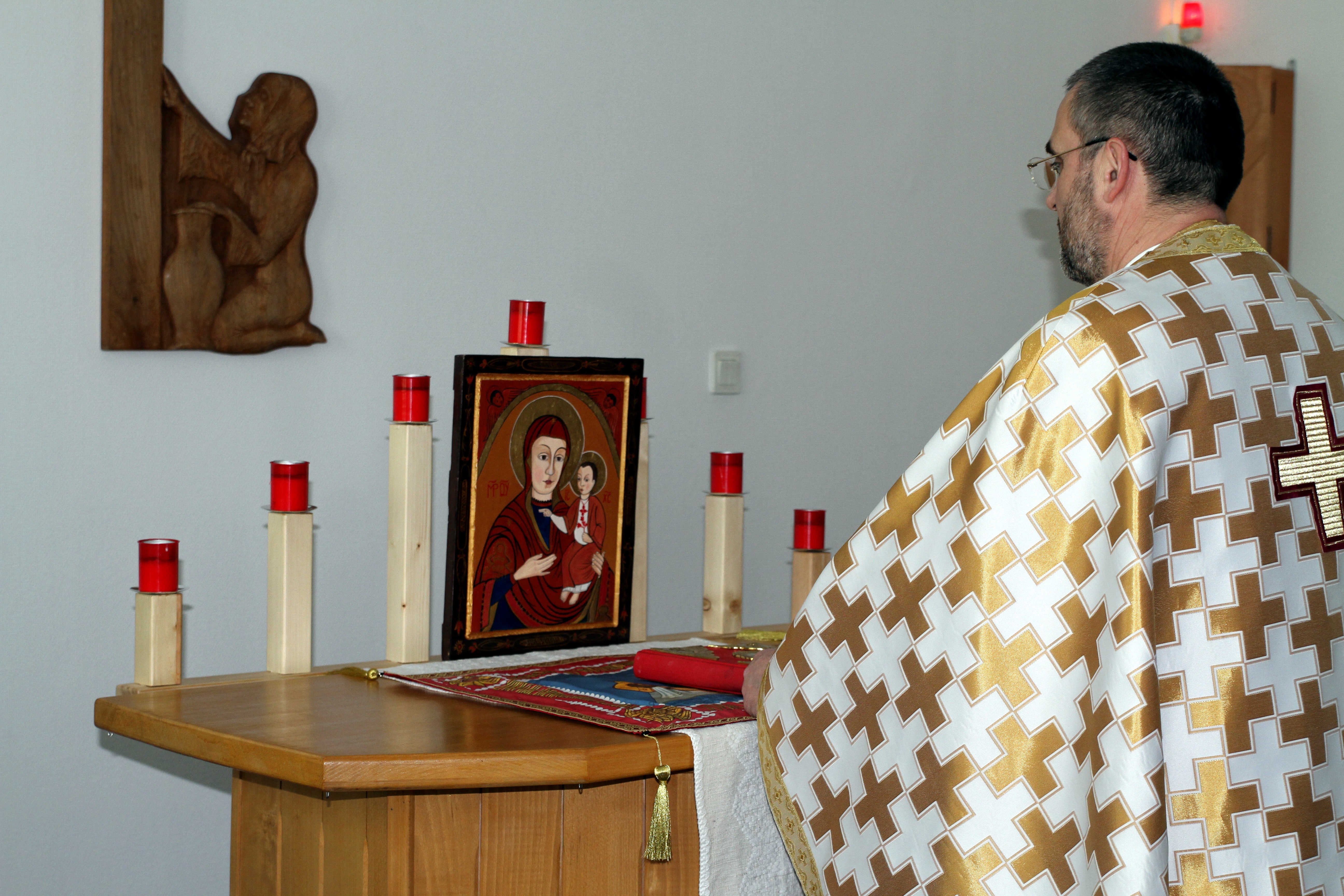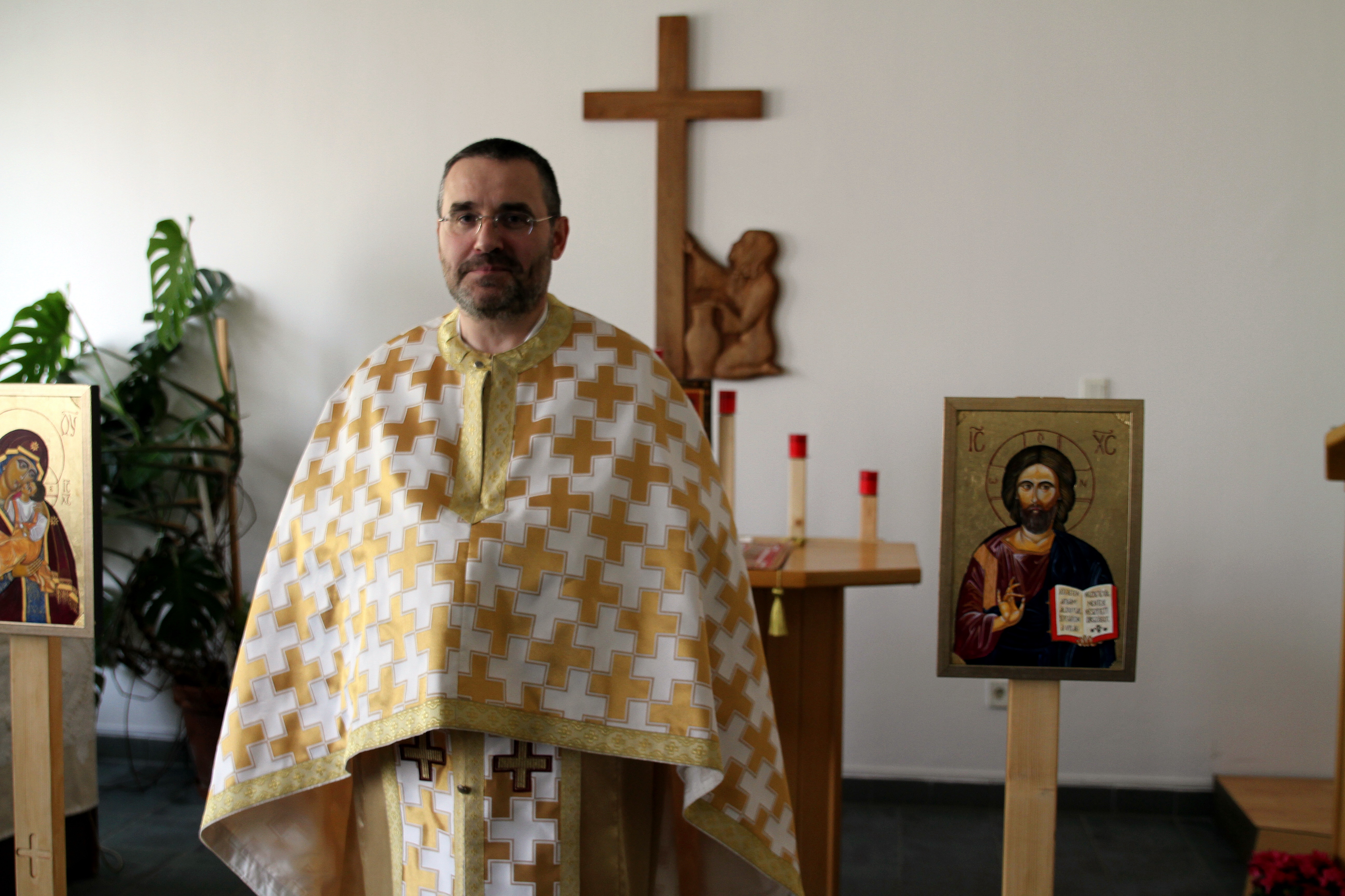 Naponta végeznek Szent Liturgiát a Kenézy Gyula Kórház kápolnájában, emellett önismereti és pszichoterápiás foglakozásokat is tart. Időt szakít arra is, hogy négyszemközt beszélgessen azokkal a betegekkel, akik megtisztelik a bizalmával. Az intézmény is segíti a munkáját, vagy az orvos, vagy a nővér jelzi, ha egy beteg műtét előtt áll esetleg, és segíteni kell neki leküzdeni a szorongást. A környező utcából is járnak a kórházba Szent Liturgiára, ezt bárki megteheti. Ráadásul a környéken élők gondozzák a kápolnát, díszítik azt virágokkal.