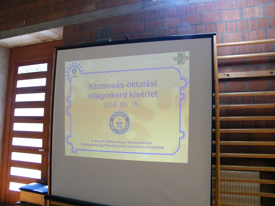 2016. május 05. a Kéztisztaság világnapja. Ezen a napon iskolánk is benevezett 150 tanulóval, hogy részt vegyünk Magyarország sok más iskolájával közösen, az egy időpontban, több helyszínen kézmosás-oktatáson résztvevők számának Guinness rekordjának megdöntésében. A tanulók nemcsak elméletben, hanem játékos formában szereztek ismereteket a kézmosás fontosságáról és a "tüsszentőpályák" segítségével demonstrálták a mikrobák terjedését, a cseppfertőzést. A helyes kézmosás lépéseit megtanulva és elsajátítva bizakodunk abban, hogy sikerült a rekord kísérlet.