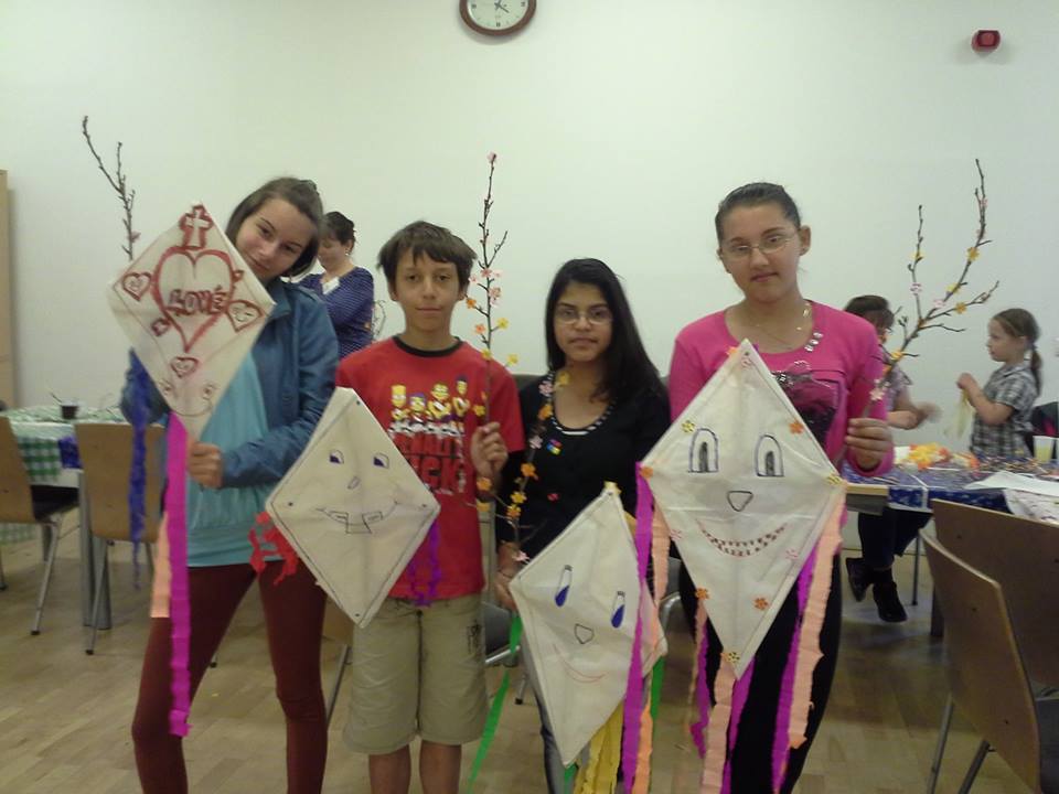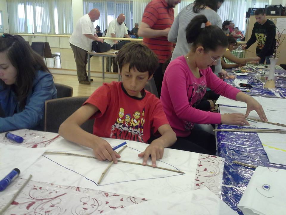 Elsőként kézműves foglalkozáson vettünk részt, amiben a Míves Kezek Társulat volt a segítségünkre. Papírsárkányt készítettünk, amit színes szalagokkal díszítettünk. Mindegyik nagyon egyedi lett, tükrözve a gyerekek személyiségét is.