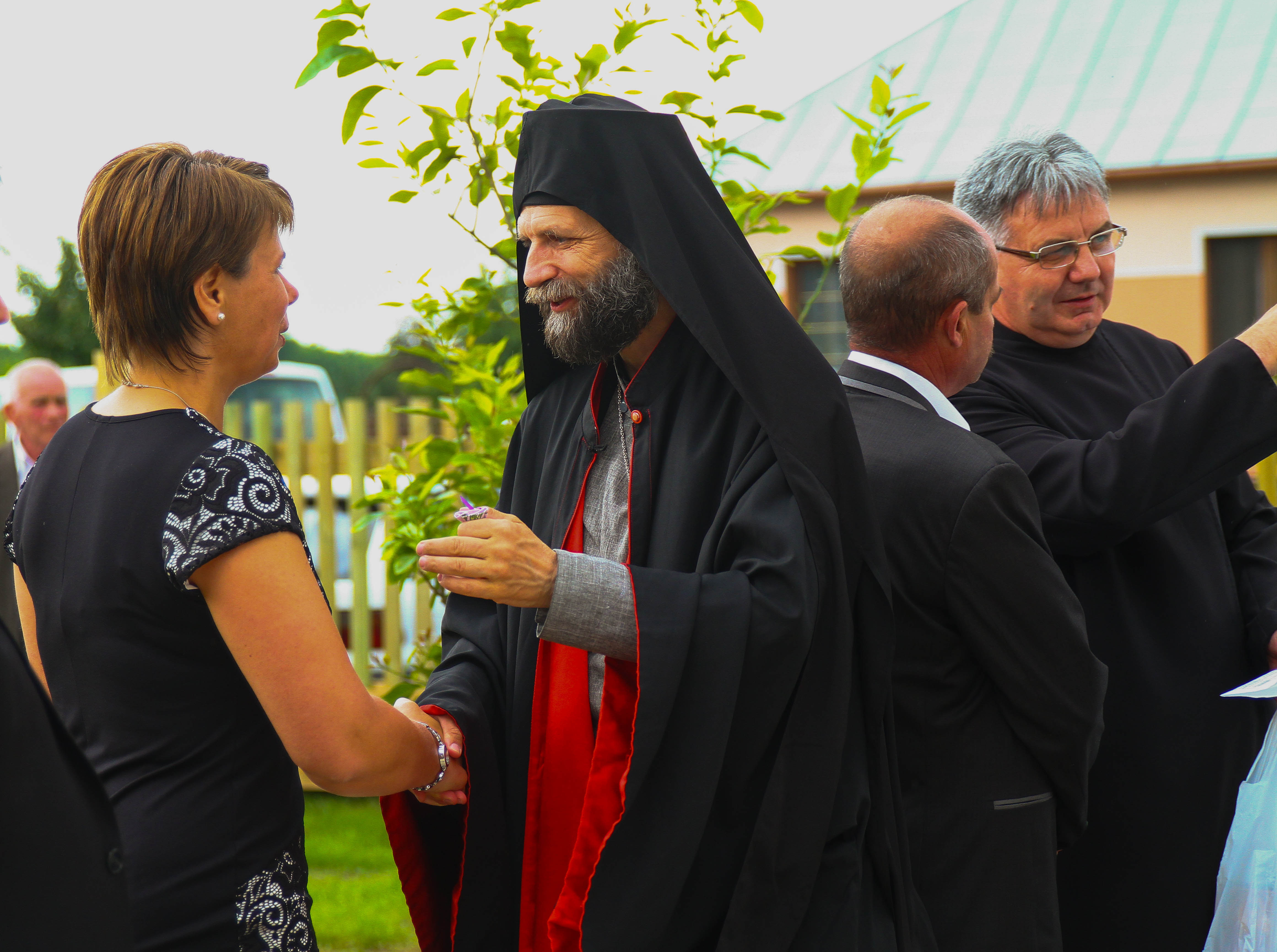 Kocsis Fülöp, metropolita köszöntőjében úgy fogalmazott: hál’ Istennek, ma már alakul az emberek gondolkodása, és egy többen észreveszik, hogy akik fogyatékkal élnek, és rászorulnak a másik emberre, nem kisebb értékű emberek. Sőt, nem is ő nekik van ránk szükségük, hanem nekünk rájuk. Hogy tudjunk kinek segíteni. Ez a mostani nagy terv az integráció jegyében jött létre, fogalmazott Kocsis Fülöp. Az integrációnak az eredeti jelentése nem is igazán a beillesztés, hanem a teljesség. Be kell látnunk szerinte, hogy mindnyájunknak törekednünk kell erre. Jézus is ezt a feladatot szabta nekünk, amikor a szeretet parancsát állította elénk: hiszen őt is csak teljes szívünkből, teljes lelkünkből, teljes elménkből lehet szeretni. Ahogy a felebarátunkat is. Amikor megpróbáljuk ezt megvalósítani, folytatta, akkor tudjuk mi is megtalálni az életünkben a helyünket, akkor tudunk mi is beilleszkedni a társadalomba. Mivel egyházi intézetről van szó, ez az elsődleges célunk: az isteni teljességre vezetni mindenkit. Nemcsak a szakolyi gondozottakat, hanem azokat is, akik velük foglalkoznak. Adja az Isten, hogy ez a mai ünnepség legyen egy új kezdet, adjon mindnyájunknak lendületet, erőt, hogy valóban ezt az Istentől kapott hivatásunkat tudjuk teljesíteni, teljessé tenni, zárta gondolatait Kocsis Fülöp. Czibere Károly, a szociális ügyekért és társadalmi felzárkózásért felelős államtitkár úgy fogalmazott: a szakolyi otthon megvalósítói Krisztus bátorságával léptek erre az útra. Nekik majd tovább kell adniuk az itteni tapasztalataikat, hogy mások is vegyék a bátorságot, hogy akár falakat bontsanak le ember és ember között a jövőben. Hiszen a társadalmi integráció csak így tud megvalósulni. A köszöntők után az otthon lakói adtak elő egy kis műsort, amivel készültek: énekeltek, szavaltak, majd Kocsis Fülöp és Szocska A. Ábel megszentelték az új épületeket.