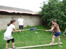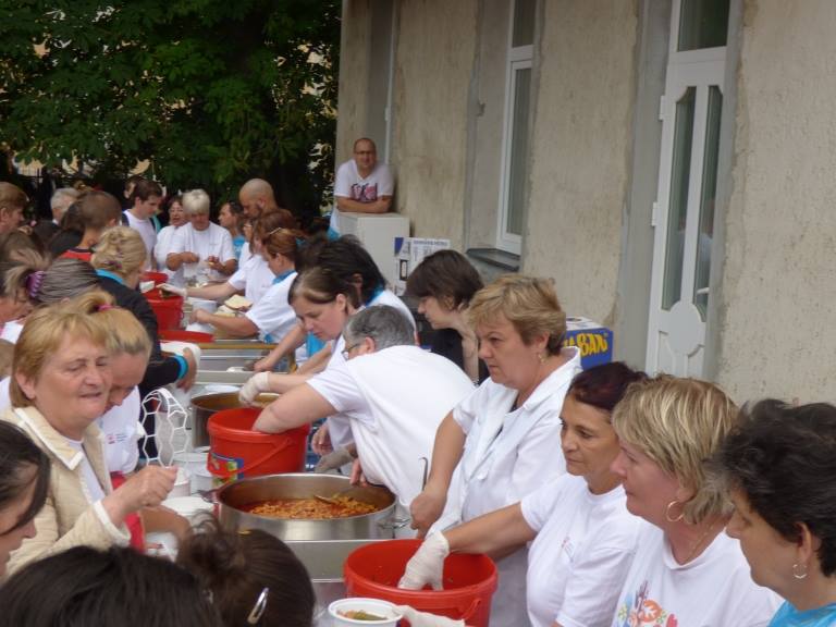 Közben elkészült az ebéd is. A résztvevők pörköltet ehettek tésztával és savanyú uborkával, a desszert pedig banán volt.