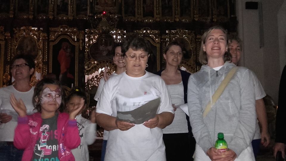 A templomban, míg a buszok érkezésére vártunk, közös énekléssel múlattuk az időt, közben a futball döntők is lezajlottak.