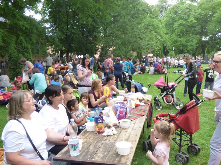 A résztvevők nyitott, kedves és befogadó közönségnek bizonyultak. A templomkertben több helyszínen is tartottak kézműves foglalkozást: ki lehetett próbálni a szalvétatechnikát, lehetett köveket festeni, műanyag flakonokból virágot készíteni. Volt arcfestés, csillámtetkó, gyöngyfűzés. A délelőtt folyamán sokan keresték fel a népi fajátékokat, ahol mindenki kipróbálhatta ügyességét. Egy-egy helyszínen kuponokat lehetett gyűjteni, melyet a későbbiekben csokira válthattak be.