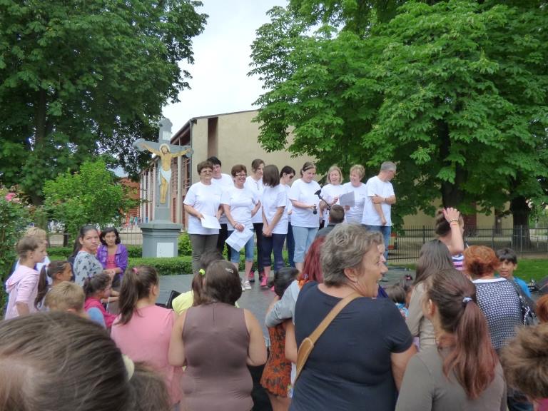 A Szent Lukács Görögkatolikus Gyermekvédelmi Központ felnőtt dolgozóiból álló énekkarának műsorában hiába szerepelt, hogy „ a felhők fölött ragyog a nap”, elkezdett szakadni az eső, így mindenki a templomba szaladt be. Ott került sor a díjak átadására.
