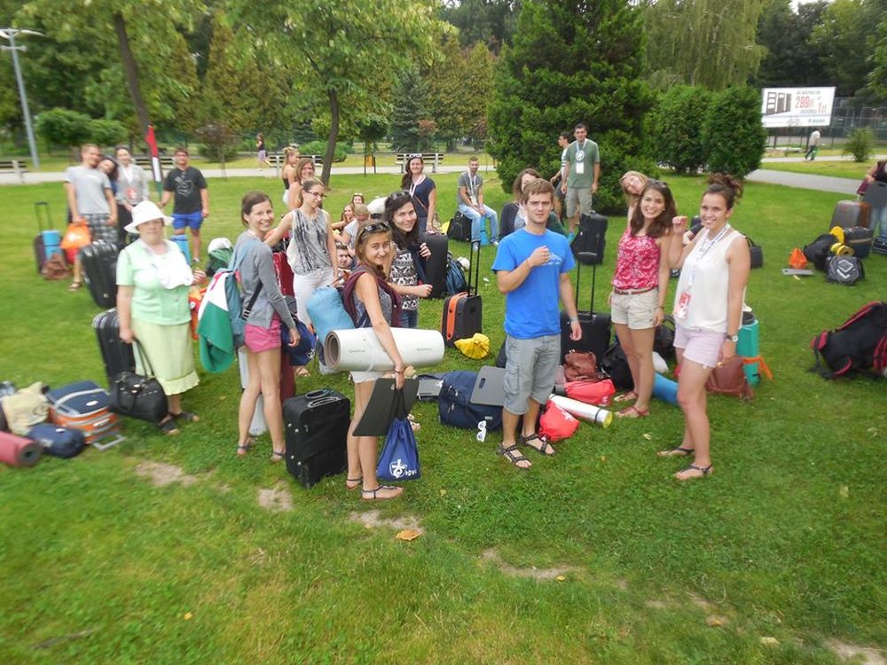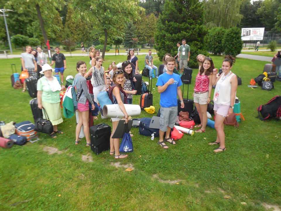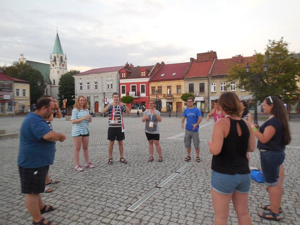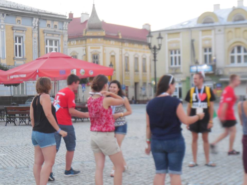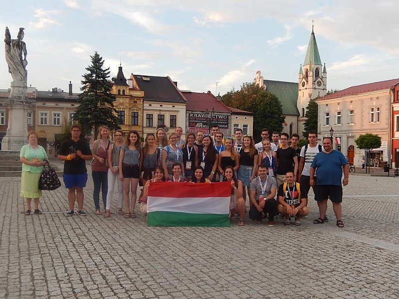 Reggel a magyar zarándokcsomagok kiosztása után megtekintettük a városkát, ahol a szállást kaptunk, Vöröskolostort. Egy óra nézelődés után pedig elindultunk hát utunk célvárosába, Krakkóba, vagyis jobban mondva a szálláshelyünkre, Brzesko-ba. Kora délután megérkezvén egy kis várakozás után, szépen lassan mindenkinek megérkezett a szállásadója, és örömmel láttuk, hogy egyre több magyar csapat érkezik meg az IVT-re. De közben találkozhattunk már franciákkal is. Mi, ahogy megérkeztünk a szállásunkra, egy kedves néni fogadott minket, aki sok jóval ellátva járt a kedvünkben. Vacsora után pedig kiment a kis csapat a városba, s a főtéren elkezdtünk játszani, megtartva a jó kedvünket, majd mindenki „hazament”.