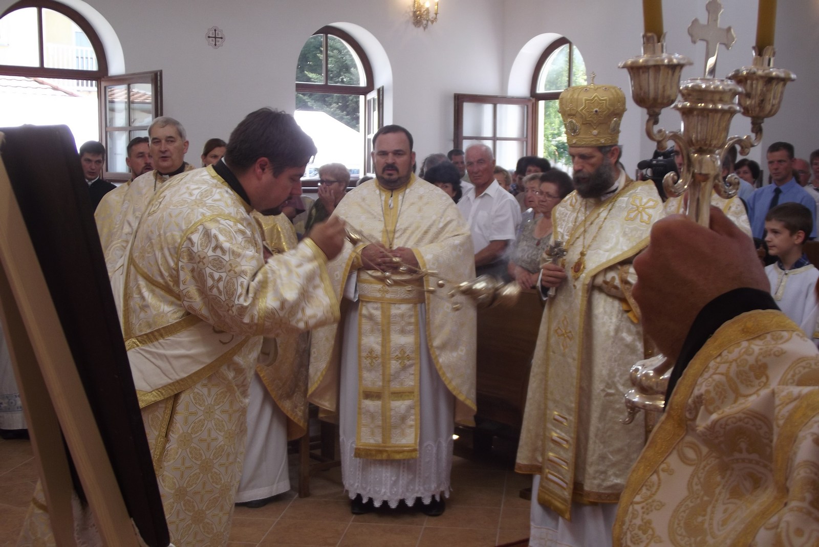 Régóta várt nap érkezett el a Beregben és annak szívében, Vásárosnaményban, illetve a környékén élő görögkatolikus hívek számára: augusztus 21-én, vasárnap Fülöp metropolita atya fölszentelte a nemrégiben elkészült templom épületét. Hosszú, és olykor nehézségektől sem mentes időszak előzte meg a szentelést, de az ünnepen megtapasztalhattuk, hogy Istennek vannak rendkívüli útjai ahhoz, hogy ilyen gyümölcsök is megteremjenek, és hogy az embernek mindig érdemes vállalnia a küzdelmet és a nehézségekkel való szembenézést is Isten ügyéért. Szép számmal gyűltek össze hívek és papok az ország megannyi szögletéből, hogy együtt ünnepeljenek a beregiekkel és a templomra nagylelkű adományokat adó építtetőkkel. A kellemes, késő nyári időjárásban alig vártuk, hogy bejussunk a templomba, melyet a sok hívő a szertartás végére kellően be is melegített. Bízunk benne, hogy a vásárosnaményiakban megmarad, és növekszik ez a vágy, hogy ugyanígy vágyjanak a templomba, és megtapasztalják, hogy az Isten színe előtt közösen töltött idő átmelegíti a szívünket, lelkünket, és igazi emberi közösséggé formál bennünket - mondta Demkó István, parókus.