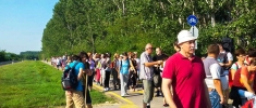 2016. szeptember 10-én, szombat reggel indultunk el a Kisasszony-napi búcsúra, Máriapócsra. Debrecentől Nyíradonyig a már megszokott módon vonattal mentünk, s az állomástól gyalogos zarándokokként indultunk el pócsi Szűz Anyánkhoz. Jó százan indultunk el, de a nyíradonyi, a csapókerti és tócóskerti egyházközségekkel együtt majd 200-an kezdtük el közös utunkat.