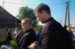 Ahogy elhagytuk Nyíradonyt, Fülöp érsek- metropolita atya érkezett közénk, hiszen hivatalos útja éppen ebben az irányba vezérelte őt. Bátorító volt a főpásztor buzdításával haladni utunkon. Első rövid pihenőnk Nyírmihálydiban volt, majd onnan Nyírgelsére érkeztünk parókus atya vendégszeretetét élvezve. Mondhatjuk, eddig könnyed volt az út, hiszen az első km-ek után még egészen friss és fitt volt a lelkes csapat, ráadásul bőséges és finom ebéd várt itt mindannyiunkat a Márkó család jóvoltából. Ezek után következett zarándoklatunk leghosszabb szakasza az erdőn át, földes, poros úton, ráadásul jó erős napsütésben. Ugyanakkor minden küzdelem és kitartás mellett most is megérezhettük a jó Isten kegyelmét, hiszen hideg dinnye, s a bennünket kísérő és segítő Kujbus család kisbuszából hideg víz is előkerült. Kislétán volt utolsó pihenőnk, ahol a hagyományokhoz híven ismét részesültünk a hívek vendégszeretetéből és terített asztalából. Ekkorra már csak 7 km maradt a bő 30 km-es zarándoklatból. Ekkorra már igen nagy szükségünk volt a kitartásra is. A test kezdett elfogyni, de lélekben annál inkább megerősödve haladtunk. Mi sem bizonyítja ezt jobban, hogy amikor lemerült a hangosításunk, amely által könnyebb volt az egész zarándokúton az imádságra figyelni és abba bekapcsolódni, mi együtt, a zarándokok teljes szívvel és lélekkel, oly hangosan énekeltük a Mária énekeket, mintha mikrofonba énekelnénk.