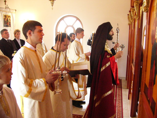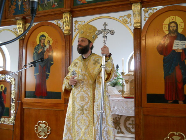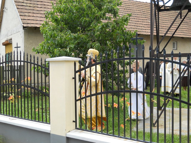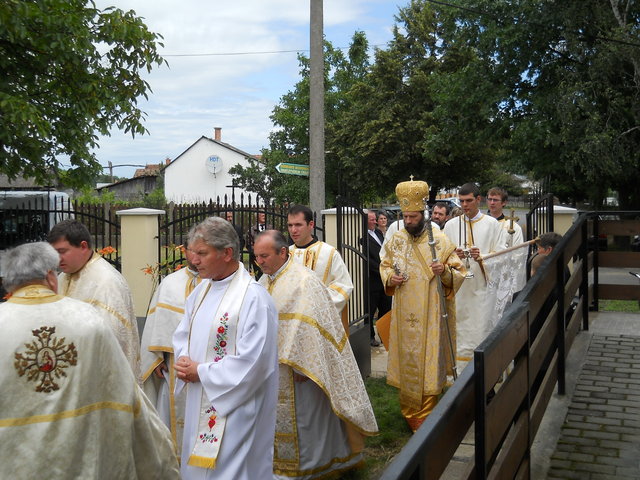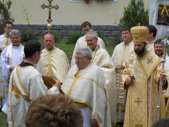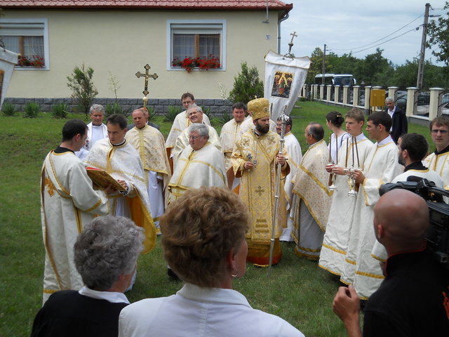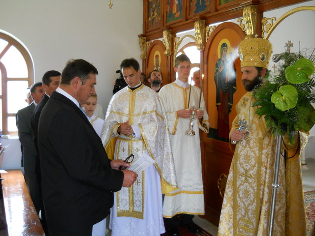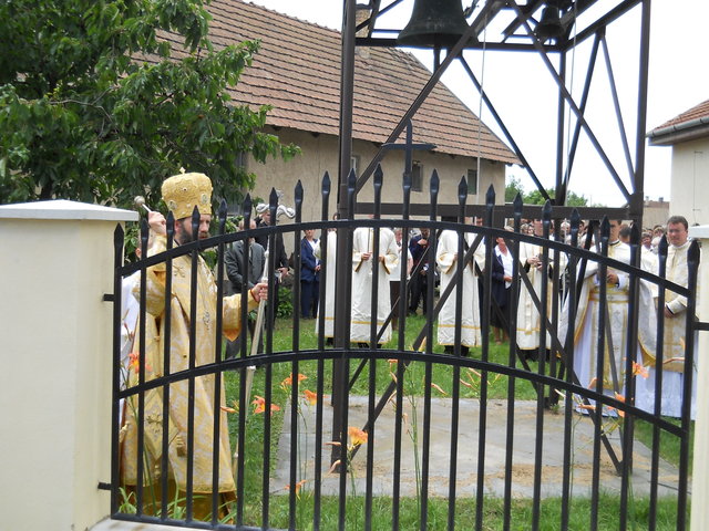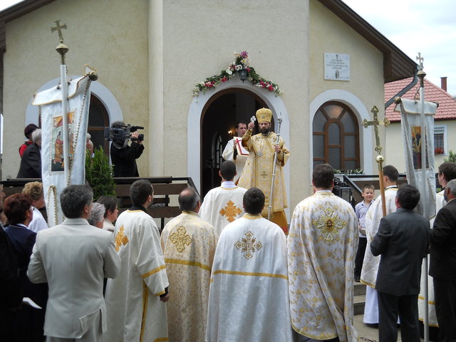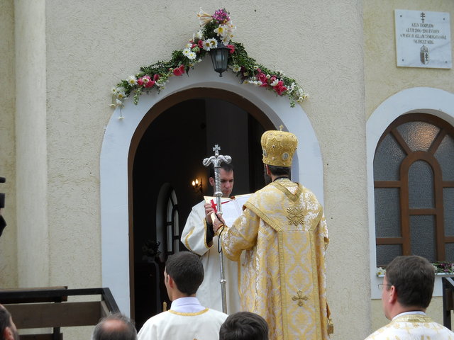 A püspöki Liturgia méltóságteljessége az első pillanattól átjárta a hívek szívét. A szentbeszéd gondolatai mindnyájunkat mélyen megérintettek, az egész közösség magával vihette egyebek között templomunk szeretetével kapcsolatos tanításait is. (Azért érintett meg még mélyebben a szentbeszéd ezen része, mert minden vasárnap a templomban tehetem le terheimet, s meríthetek erőt a hétköznapokhoz.) A Szent Liturgia végén mi, a képviselő testületi tagok, Püspök atya előtt tehettük le a fogadalmat, megígérve, hogy miden igyekezetünkkel a közösség javát törekszünk előmozdítani. A szertartás a körmenettel, valamint az új kerítés megszentelésével folytatódott, amit a himnuszok és éltetések zártak. Ezt követően agapé, és örömteli beszélgetés következett. Szerény agapénkon jó volt együtt örülni a vendégekkel, akiknek köszönjük, hogy eljöttek és osztoztak örömünkben. Köszönet Béres Gábor atyának egyházközségünk gyarapodásáért, és hogy odaadással szervezte meg ünnepünket. Külön köszönet Püspök atyának a beruházás lebonyolításában nyújtott segítségéért, és hogy ezen a feledhetetlen ünnepen velünk ünnepelt, elhozta közénk főpásztori áldásával Isten kegyelmét.