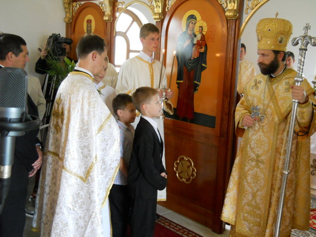 Nagy lelkesedéssel gyűltünk össze szombat reggel az egész napos előkészületi munkákra, ahol nem csak a templomot és környezetét, hanem lelkünket is megtisztítottuk az esti szentgyónás által. 2010. június 27-én vasárnap elérkezett a nagy nap: reggel megérkezett Püspök atya, és az utrenyével kezdődött meg a várva várt ünnepség. Öröm volt részese lenni a szertartásnak, sok imádság, éneklés mellett csodálatos volt az is, hogy a Szent Liturgia kezdetéig csendben zsúfolásig megtelt templomunk. Különösen méltóságteljes mozzanat volt Püspök atya átöltözése a csodás imádságok kíséretében.