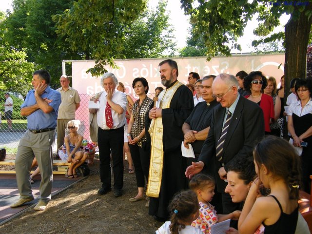 Az köszöntések után az ünnepélyes áldás szertartása következett melyben helynök atya körbejárva szentelt vízzel hintette meg az épületet, és mögötte megannyi kisgyermek kígyózott, csillogó szemekkel figyelve, hogy mi történik. A szertartás végén a gyerekek nagy örömmel vették birtokukba az új játékokat. Sokan azt sem tudták hirtelen melyiket próbálják ki a sok közül. Nagy öröm ez az Óvodának, ezért legyen hála az Istennek és köszönet mindazoknak, akik közreműködtek, hogy mindez létrejöhessen. Isten áldja meg életüket!