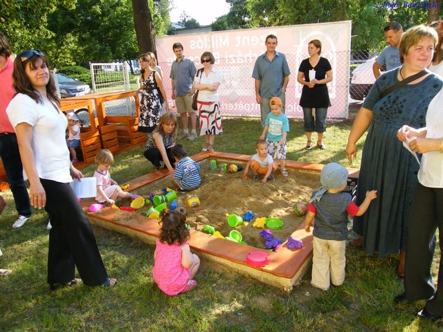 Dr. Nagy Kálmán professzor, országgyűlési képviselő úr, aki már sok-sok éve a Megyei Kórház Gyermekgyógyászati osztályán látja el hívatását kiemelte, hogy a gyermekekért érdemes élni és dolgozni, hisz mindennapjaiban rengetegszer találkozik a legkisebbeket is megpróbáló súlyos betegségekkel, melyeken felül kell tudni emelkedni és le kell győzni azt. Hisz a gyermekeké a jövő. A hitüket tanuló és majdan gyakorló gyermekekben ez még jobban érvényes lesz a Jézushoz vezető úton. Ezt követően a gyermekek műsora következett mintegy hálaképpen a megújult külső falért és játékokért. Dr. Kaulics László helynök atya unokáit idézte: „Gyere játszani nagyapa!” És lám, ilyen alkalmakkor különösen is rá kell ébredni, hogy mennyire fontos a játék. Felhívta a figyelmet, hogy a Bibliában is rögtön az első lapokon ott van a játék. Igen játék, hisz Ádám is nevet ad az állatoknak a Teremtéskor. A gyermekek is szeretnek egy-egy állat bőrébe játékból képzeletben belebújni. Nagy játék az élet, akárcsak a most aktuális világbajnokság. Nekünk is győznünk kell, hisz erre vár Jézus az életünk kapitánya. Ez a játszótér egy kicsit el van különítve a világtól, kicsit „szent” (hagios-kivág). Kivágva a világból a békés játék szigete lehet. És végül megjegyezte, hogy így lesz ez mindig, mert Isten vigyáz a gyerekekre a játékban is.