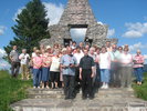 Továbbmentünk a Munkácstól 25 km-re fekvő Szolyvára. Ebben a táborban 1944 őszétől a „málenkij robotra” elhurcolt kárpátaljai magyar férfiak közül több ezren lelték halálukat. Szolyvát a gyűjtőlágerek embertelen bánásmódja, a táborba zárt foglyok szenvedése, magyar Golgotává avatta. Az emlékparkban a 12 000 ártatlan áldozat nevét a siratófal fekete márványtáblái őrzik. A tűző napsütésben, a hely szellemét idéző csendben megrendülten imádkoztunk az elhunytak lelki üdvéért. „Boldog nyugalmat, és örök emléket”. Pannachidánk az égig zengett. Tovább a Latorca völgyében, gyönyörködve az érintetlen természet szépségében megérkeztünk a Vereckei hágóhoz. Az emlékműben felfedeztük az ősi magyar hitvilággal és a honfoglalás körülményeivel kapcsolatos szimbólumokat.
