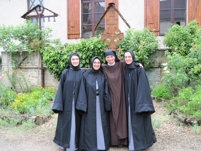 A franciaországi Szent Illés Monostor kápolnájában Fülöp püspök atya végezte a beöltöztetés szertartását, melynek keretében a frissen varrt habitust viselő jelöltek: Erika, Judit és Mónika hajába kereszt alakban belevágott, majd rájuk adta a rászont és a kendőt.