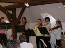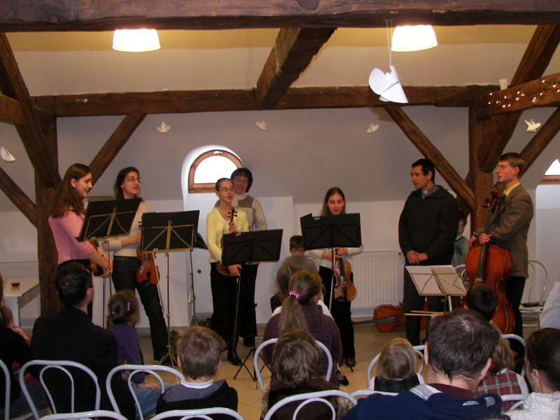 A két eloadás közti szünetben kötetlen beszélgetés zajlott a résztvevok és a meghívott vendégek között - a közösségünk tagjai által készített finomabbnál finomabb sütemények fogyasztása közben. A magasztos gondolatokat csendes elmélkedés követte, majd elérkeztünk a nap fénypontjához: a Sivadó család karácsonyi koncertjéhez. A gyönyöruen szerkesztett musorban a zeneszámokat, énekeket versek, bibliai részletek színesítették. A gyerekek elmesélték, eloadták Jézus születésének történetét, és közben hangszereiken Bachot, Vivaldit, Mozartot játszottak. Felemelo élmény volt, köszönet érte!