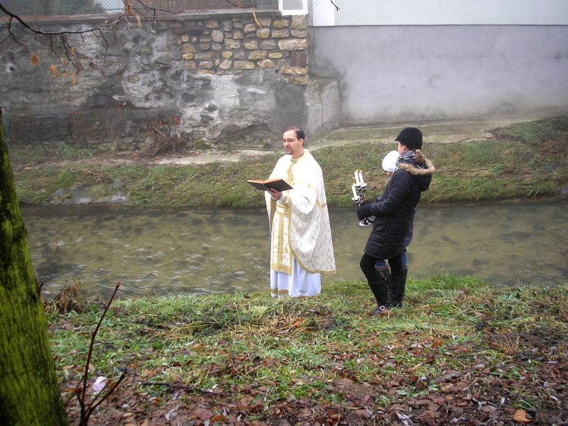 A veszprémi görögkatolikus közösségben január 9-én, a vízkereszt ünnepén celebrált szentmise után, az egyház hagyományai szerint megtartották az élővíz-szentelés szertartását a veszprémi vár falai alatt csobogó Séd-pataknál.