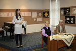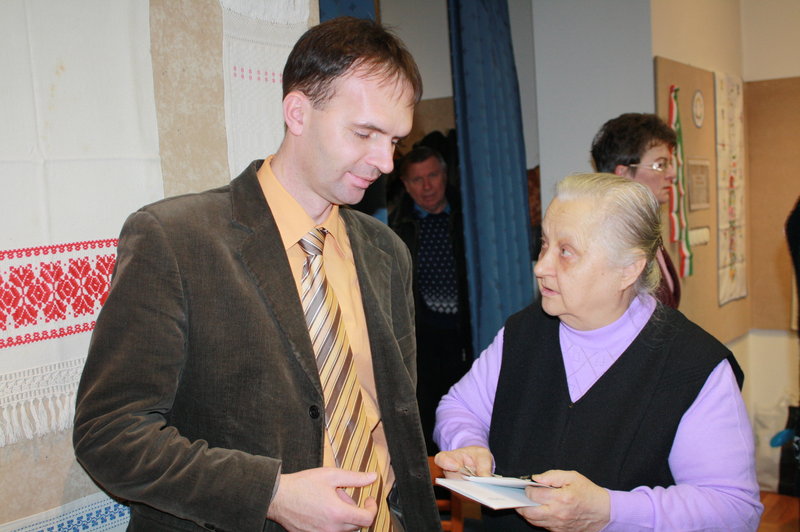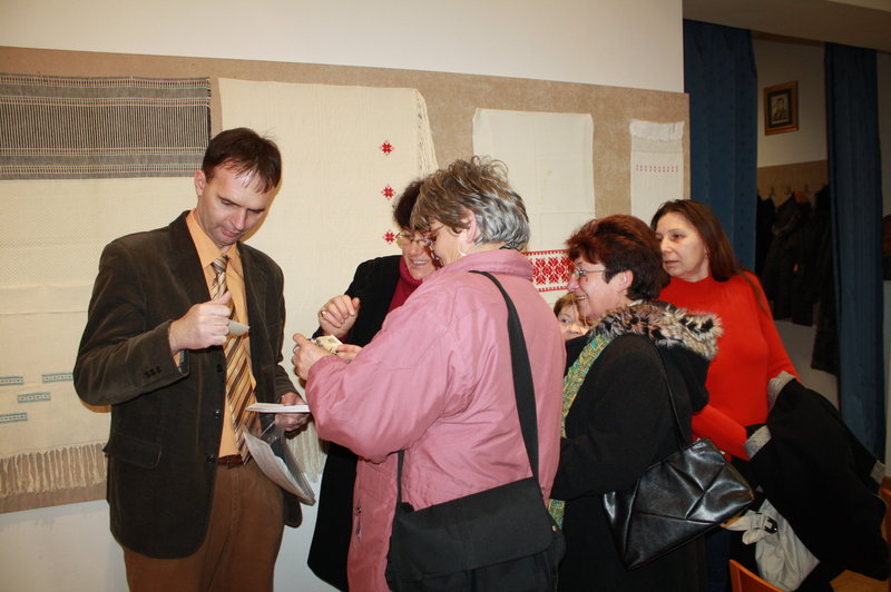A tárlat megnyitójára megtelt a kiállítótér érdeklődőkkel. Érkeztek Komlóskáról, Alsóregmecről és a városból is sokan, hiszen papnéként férje mellett szolgálta egyházunkat, s így megismerhették sokan az évtizedek alatt.