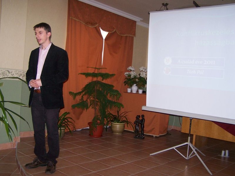 Tóth Pál előadásában foglalkozott azzal, hogyan tekintsünk a konfliktusokra és miként kezeljük őket, de szó esett többek között a házasság szerepéről Isten szeretet-tervében, és a családon belüli kommunikációs kultúráról is. Kommunikációs szakemberként felhívta a figyelmet arra, hogy a családon belül is tervezett kommunikációra van szükség, még az olyan egyszerű alkalmakkor is, mint a „családi kupaktanács“ a pénz kezeléséről, vagy a házaspár lelki beszélgetései.