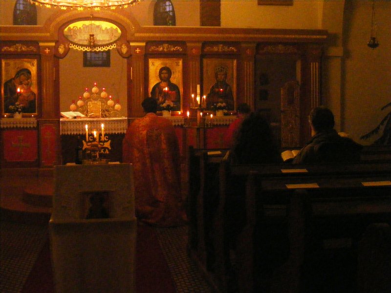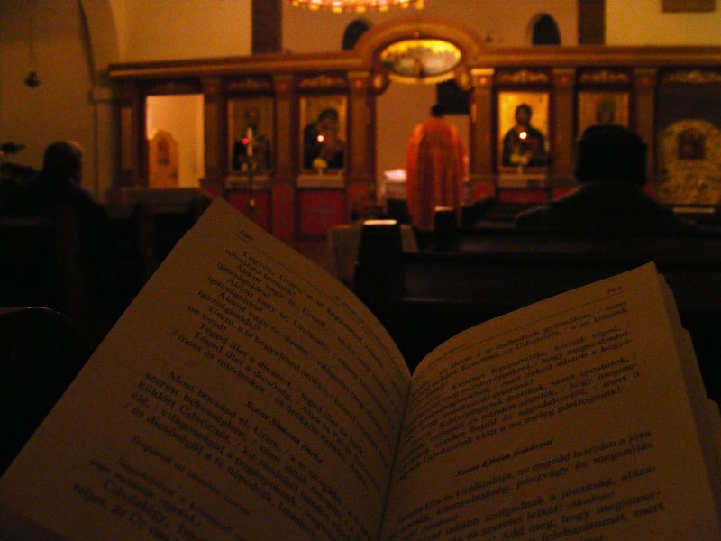 Az este egy nagyon hangulatos vecsernyével kezdődött, amit a családjaink és egyházközségünk megújulásáért, lelki és létszámbeli gyarapodásáért ajánlottunk fel. Ezt követően egy – a nagyböjti zarándoklásunk fonalára felépített – verses diameditáció segítségével próbáltunk felkészülni az előttünk álló negyven nap küzdelmeire, majd egy parasztászban emlékeztünk meg egyházközségünk és családjaink elhunyt tagjairól.