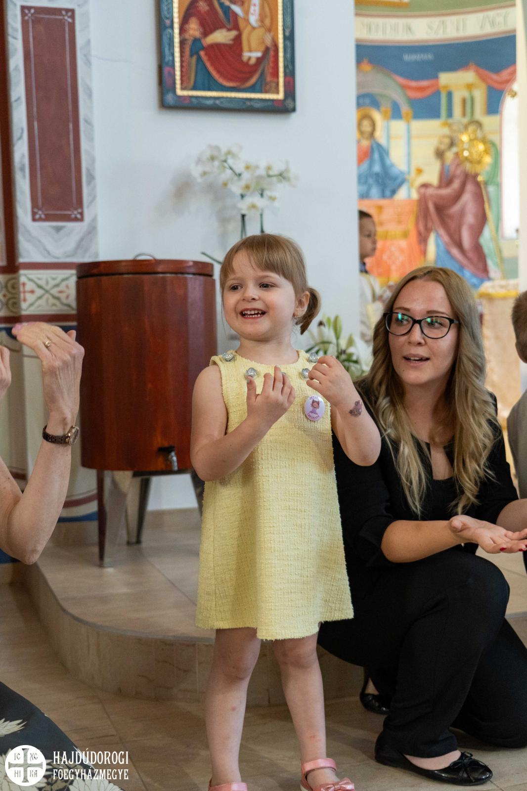„Ezen a szép napon szívünk hálával telt meg, hiszen a mögöttünk hagyott időszakban láthattuk a kicsik fejlődését, ahogy nap, mint nap növekedtek a hitben, a szeretetben, és hogyan váltak egyre önállóbbá” - fogalmazott Rása-Szabó Mariann, a bölcsődehálózat vezetője.
