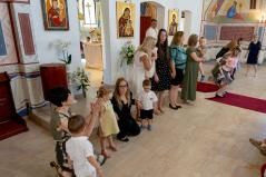 A bölcsőde lelkivezetője a Szent Liturgia végén megáldotta a ballagó gyermekeket, szüleiket, a kisgyermeknevelőket, dajkákat, az intézmény munkatársait.