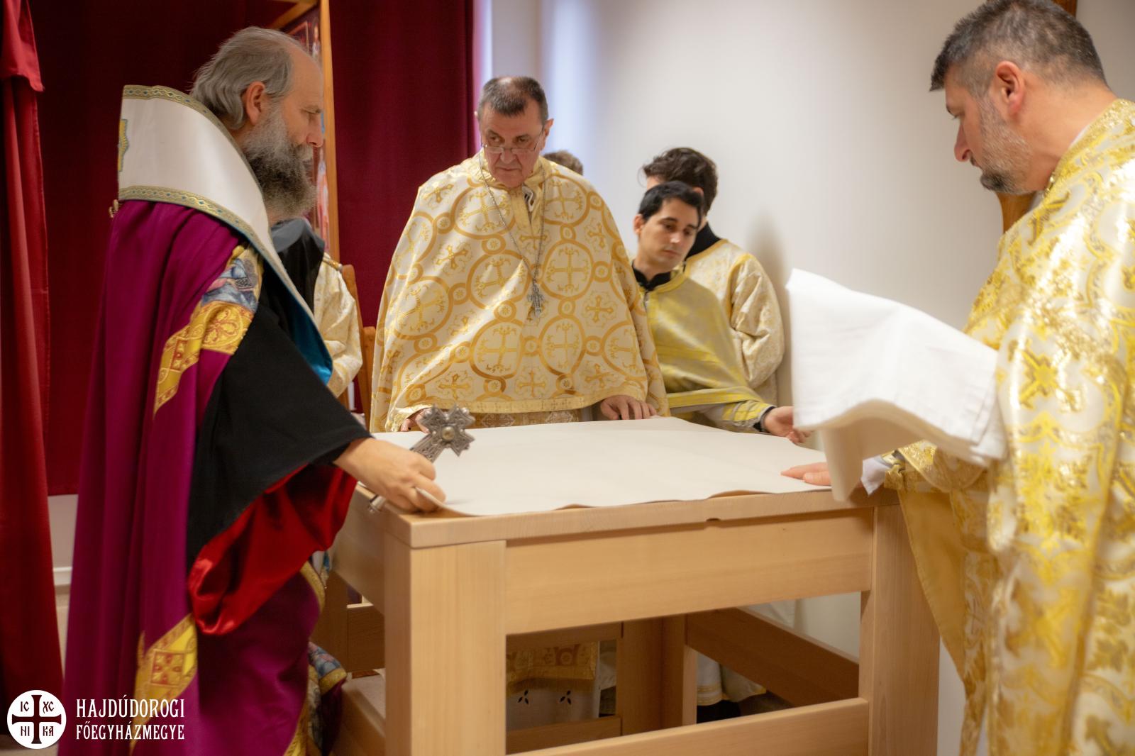 A munkatársakban, pedagógusokban és diákokban is régóta megfogalmazódott az igény arra vonatkozóan, hogy részt vehessenek iskolai Szent Liturgián. Erre azonban csak akkor van lehetőség, ha fel van szentelve az ottani kápolna. Görögkatolikus hagyományaink szerint ugyanis csak hitelesített antimenzionon szabad Liturgiát végezni. Ezt a liturgikus eszközt helyezték el az iskola kápolnájában november 25-én. A szertartás során a szenteltvízzel való meghintés után felöltöztették az oltárt, Kocsis Fülöp metropolita és az áldozópapok az antimenzionnal, kereszttel, evangéliummal és meggyújtott gyertyákkal szerelték fel az oltárt, így vehette kezdetét a Szent Liturgia.