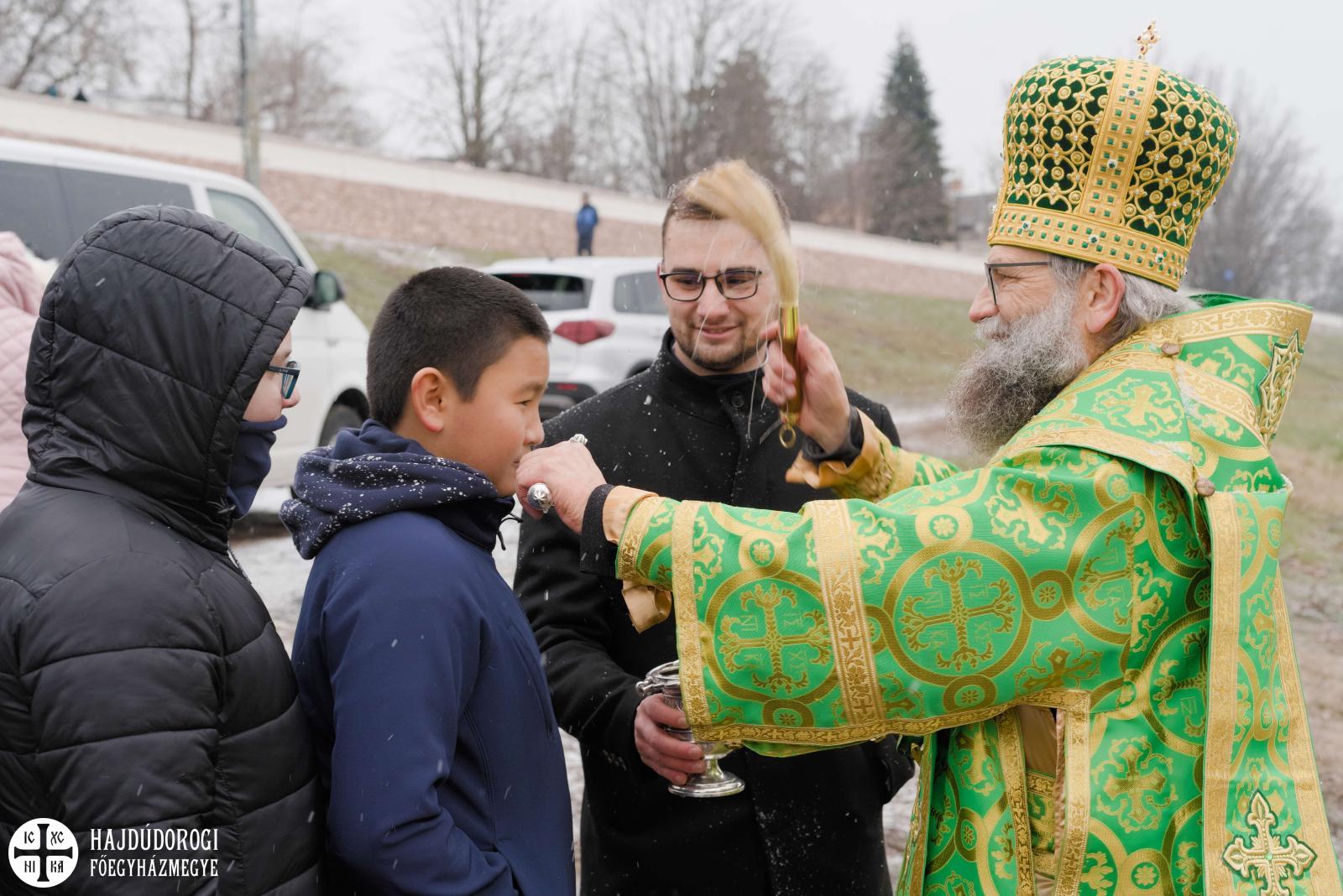 A megszentelt Tiszából vett vízzel meghintette a jelenlévőket, a folyóba mártott keresztet megcsókolva pedig mindenki kifejezhette Jézus iránti szeretetét.