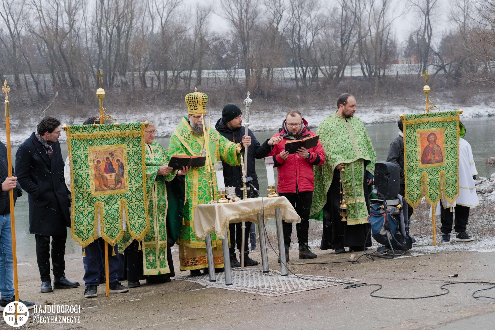 A folyóparton tartott szertartáson Szkiba Tibor parókus és Boros András segédlelkész szolgált Fülöp atya oldalán. Az apostoli szakaszokat Krizs Olivér szolnoki kántor és Szakállas Csaba metropolitai szertartó olvasta, Fülöp atya pedig az Evangélium szavaival idézte fel Jézus megkeresztelkedését.